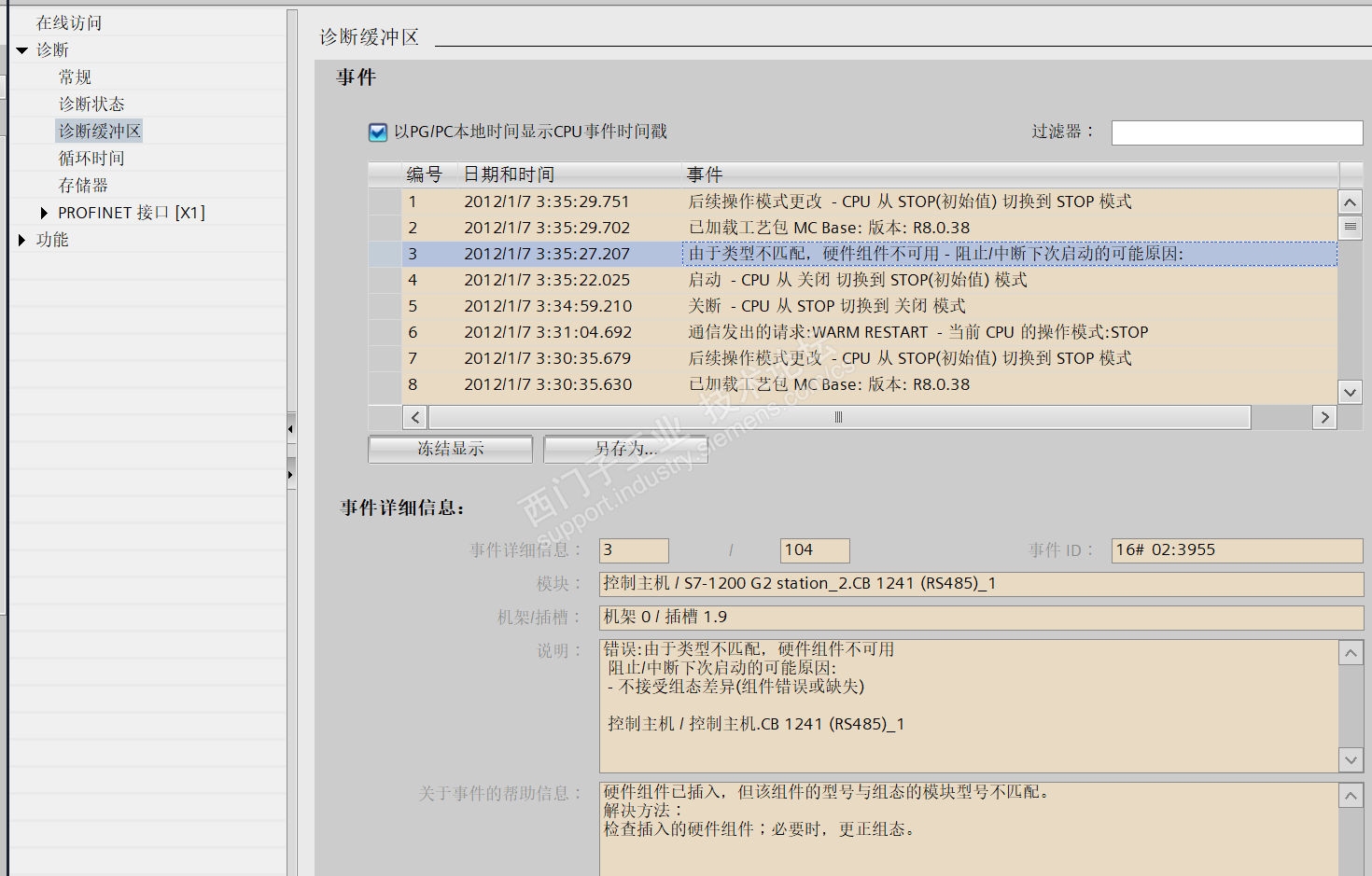刚下手买了个1200-G2的主机跟通信模块,装上后,发现错误,说是组态错误但是左看右看没错了,这是怎么回事,下面有图片,哪位大侠帮我看看