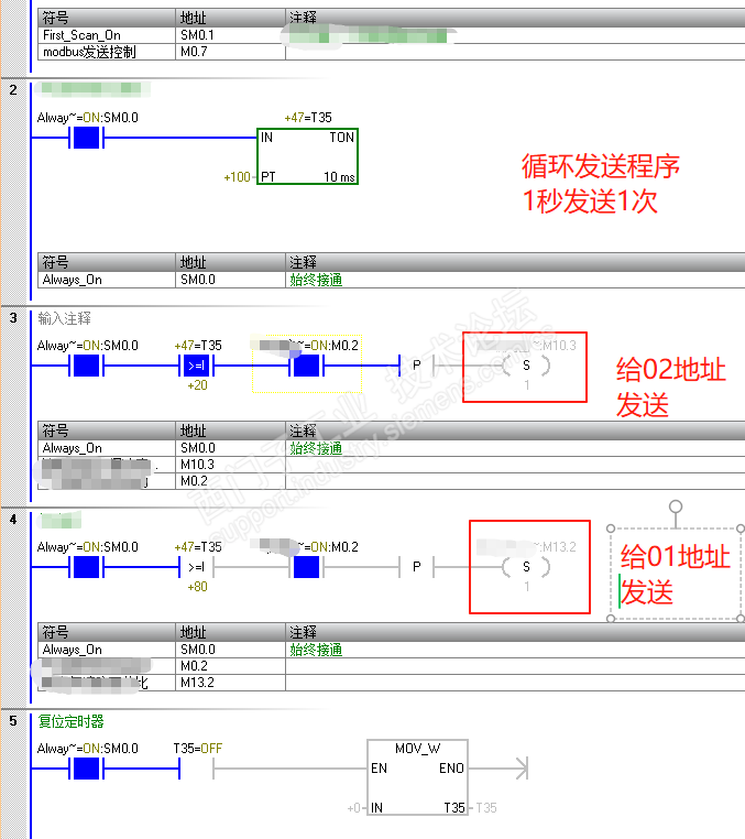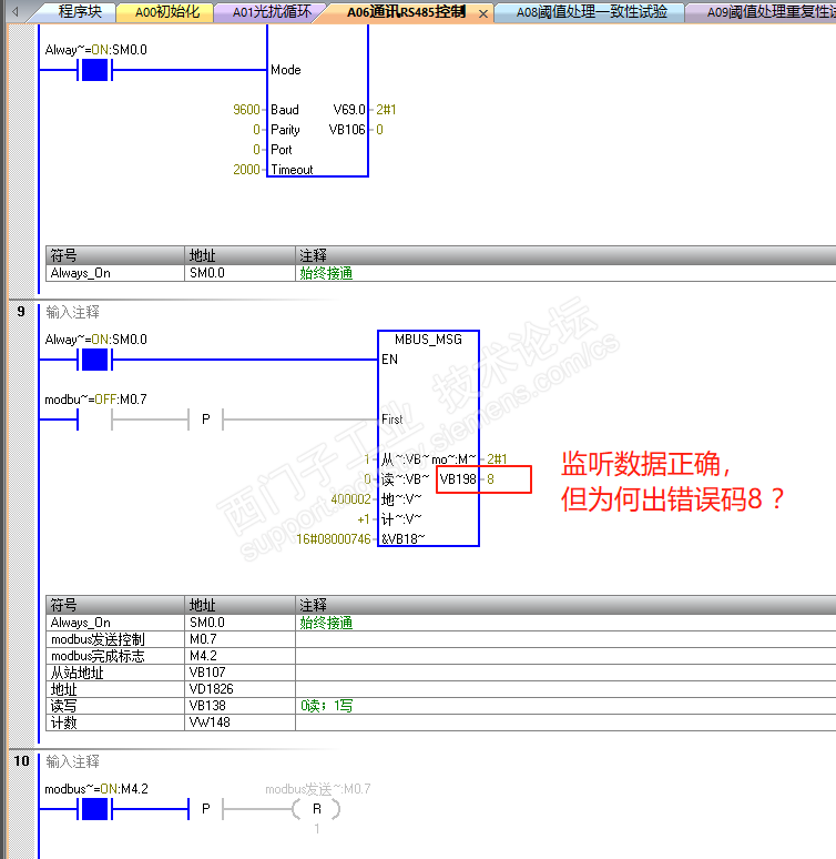 注:ST20采用自由口通信中断方式接收主站指令,解析后回码给主站PLC。