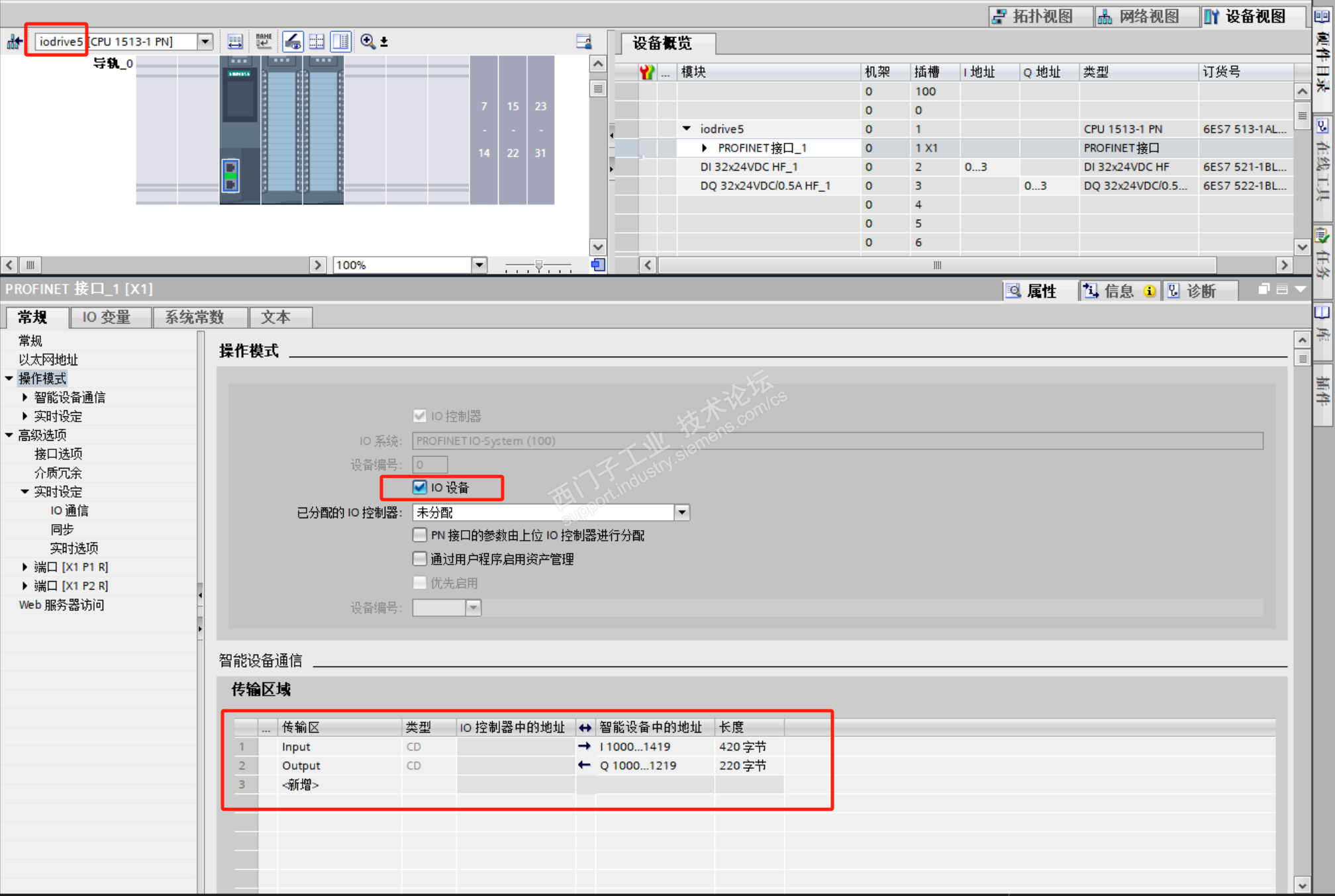 S7-1500 CPU:支持 PROFINET IO 设备模式(如1513-1PN)