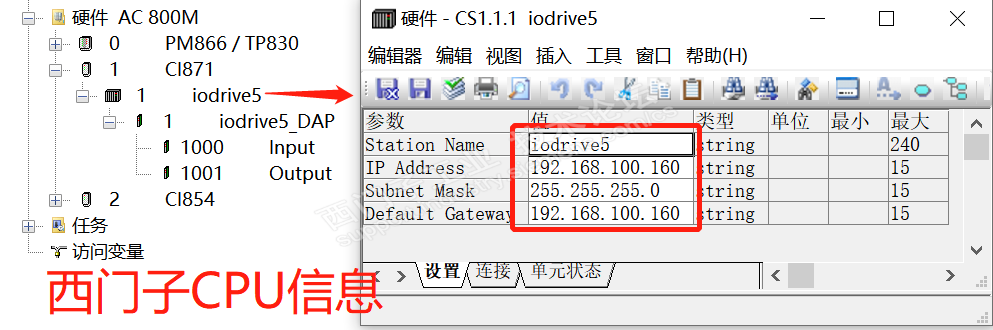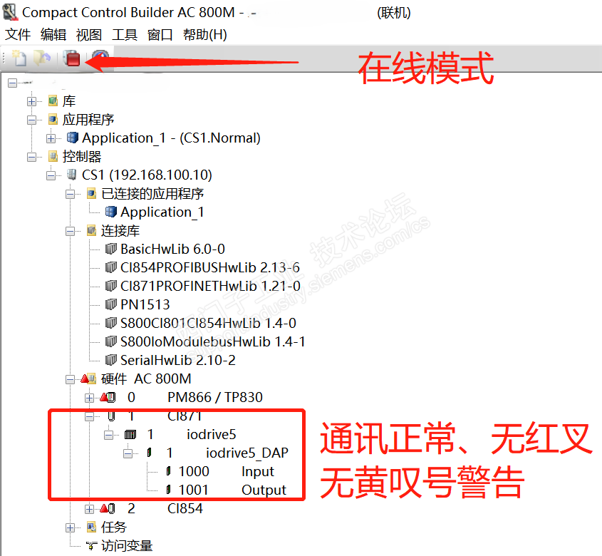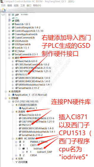 ABB 侧:Control Builder M(V6.0),用于配置 AC800M、CI871 及主站通讯。