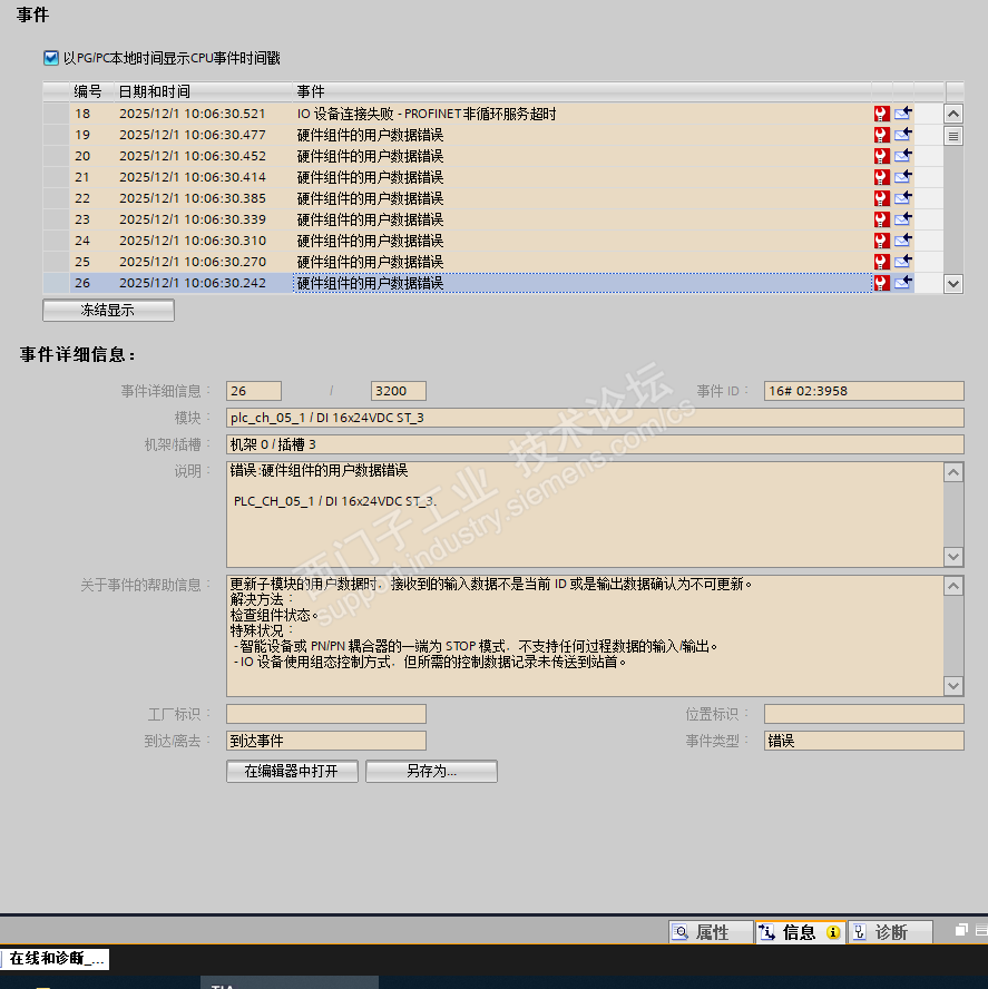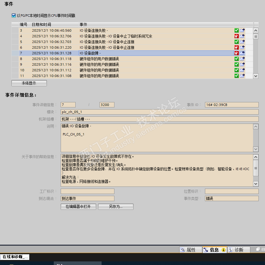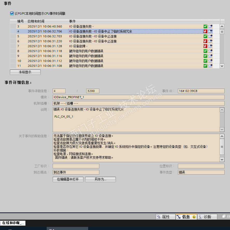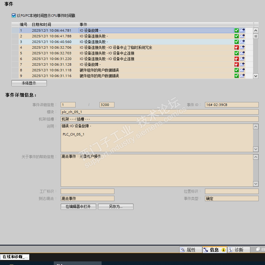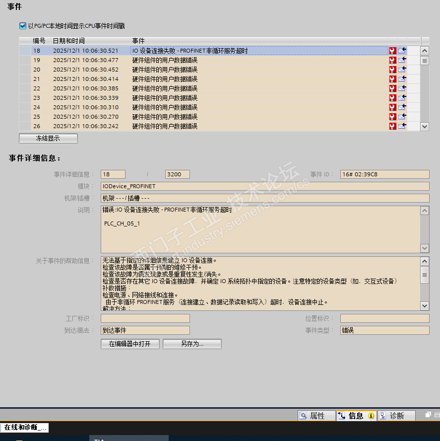在现场,PLC_05_1从站,出现不定时掉站,掉站时间持续较短,排查故障难度大。请问各位大神,还可能是哪方面的原因引起的掉站?