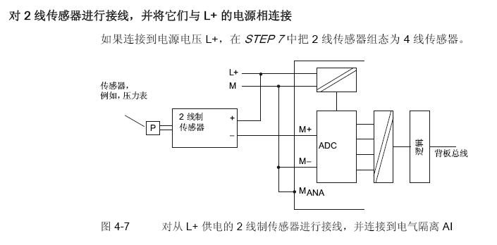 关于两线制仪表如何接成四线制信号的方法,在《S7-300模块数据(中文)》第263页上有说明。
