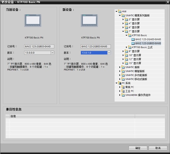 打开“设备视图”,在KTPx00上右键“更改设备/版本”,订货号保持不变,将“版本”从“13.0.0.0”改为“13.0.1.0”,如图3所示。 图3