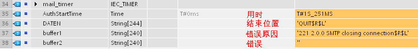 1、首先,在PLC所连接的网络必须存在路由器,且可以通过此网络能“上网”。(各种连接方式均可以。) 2、要找到一个允许通过25端口发送邮件的SMTP服务器。 3、目前测试,似乎本机如果使用TM_MAIL则不能(或不适合)同时使用PorfiNet IO通讯功能。但可以同时存在其他的TCP通讯,(包括PG通讯、PLC之间的通讯以及Web服务等)。 如何知道你的SMTP邮件服务器的IP。 打开电脑的命令提示符窗口(运行-输入CMD)。 输入 ping SMTP服务器域名,例如:ping smtp.qq.com(假如使用 QQ邮箱);找到SMTP服务器的IP地址。 ![]() 打开你使用的邮件软件的账号管理,选择服务器。将发件服务器栏填写的域名,改成IP地址:xxx.xxx.xxx.xxx。 然后,打开高级设置,取消SMTP服务端口设置的此服务器要求安全连接(SSL)选项。(应该看到端口号变成 25) 如何检查你的邮件服务器允许使用25端口? 保存后,用软件发送一封给自己。如果能收到,那么S7 1200PLC就可以使用TM_MAIL功能发邮件给你。 实践证实,确有一些SMTP邮件服务器是允许使用25端口的。 ---------------------------------- 写程序前,仔细看看《视频学习中心》EMAIL功能介绍视频,输入课程号 V1101。 在线监控 TM_MAIL_DB;发送完成是这样的。(不同的MAIL服务器应答有些差异。) ![]() 也可能是这样的正常结束。 ![]() 总之,要在线监控,TM_MAIL_DB块的这些数据。如果出现错误,你可以看到在缓冲区断开连接停止时的问题所在,有针对的修改程序。直到出现“211 Goodbye”之类,即刻会在手机上收到S7 1200发来的邮件。