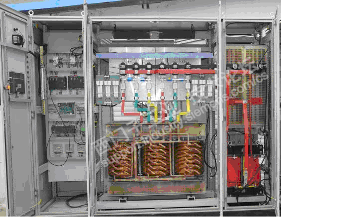 一、 项目简介 1. 近几年,随着石油、天然气等传统能源的使用危机日益严峻,对超高速的飞轮储能技术的研究已经逐渐成为当前一个热门话题,本项目就是我公司为河北冀东集团盾石电气设计制造的一套飞轮储能自动化控制系统。 2. 该系统主要包括一套900V/500A的直流控制系统和一套900V/444A的放电系统。直流控制系统给飞轮电机供电,飞轮储存能量,放电系统通过直流斩波给飞轮储存的能量放电,通过触摸屏给定和监控电源参数。 使用的主要器件有S7-200 224XP,EM231模拟量模块,EM232模拟量输出模块,LOGO!12/24RC LOGO!AM2AQ 西门子接触器3TF6944-0C(820A)西门子3RT-5056(330A)2台英飞凌IGBT 3300V/1200A 英飞凌600A/1700V快恢复二极管模块等。 一、 控制系统构成 1. 直流系统采用12脉波整流,利用温度传感器测量变压器温度,用稳流稳压触发板控制整流器工作。参数的显示、给定、远传均使用西门子S7-200PLC及相应的扩展模块来做。 放电系统采用IGBT作为主要元件,通过PWM放电控制板与光纤驱动板来控制,参数的显示、设定等均使用西门子LOGO!来控制。 整流柜及放电柜 2. 控制原理图 2.1整流系统原理图 KM 交流接触器3TF6944-0C T 12脉波变压器 FU 快速熔断器 L 平衡电抗器 C 电容器组 WL/WY 稳流稳压控制板 AC/DC 开关电源 HMI 触摸屏 Us 电压取样 Is 电流取样 Uso 电压变送输出 Iso 电流变送输出 以上分别为整流电路和放电电路原理图