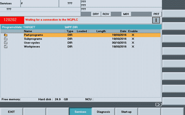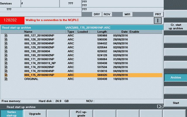 PCU20的常规备份方法是WinPCIN和CF卡,今天介绍一个Start-Up Tool备份PCU20的方法。 1、安装Start-Up Tool(ToolBOX自带软件) 2、打开NC连接向导,以810D系统为例,选择810Dpowerline,点击NEST 3、进入连接帮助界面,点击NEST 4、进入设定界面,根据SIMATIC NET类型选择CP5611或CP5512 MPI,其它选项默认,点FINISH即可。 5、打开Start-Up Tool软件,按F10进入SERVICES服务菜单。 6、备份和恢复的方法与PCU50相同。 7、备份文件的路径 C:Siemens\Sinumerik\StartUp-Tool\dh\arc.dir