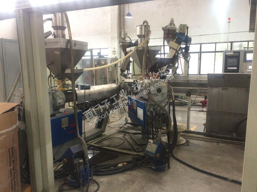 罗森泰挤出机上面的,电机和减速箱集成在一起,四个角上各有一个小电机,62个KW,普通国产75KW电机比这个大多了. 驱动器用的MM440,电机线用的双屏蔽编织线,调试的时候开机就报F0090,老外都头痛。后来我把引出线剪短后正常了,老外朝我竖起大拇指 温控用的DP通讯 我们买的二手设备改造原来是2台挤出机,后来买了4台挤出机做物理发泡。多出来的2台挤出机改在另外一条线上,系统集成是我做的(老外不保守资料程序都给我的,说个题外话我这个攻城狮属于半路出家,职高毕业能做到这步我都佩服自己) |