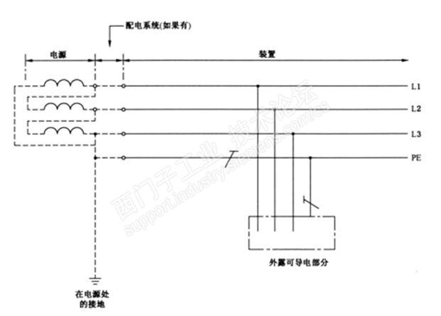 TT系统图与TN系统的图的差别,在于设备所连接的PE与电源侧提供的PE是分开的。 3. IT 电源系统 所有带电部分应与地隔离,或某一点通过阻抗接地。电气装置的外露可导电部分,应被单独地或集中地接地,也可按国家标准《建筑物电气装置 第 4-41 部分:安全防护-电击防护》GB 16895.21‐2004 的第 413.1.5 条的规定,接到系统的接地上(图 1-12 和图 1-13)。对装置的PE 可另外增设接地,并应符合下列要求: