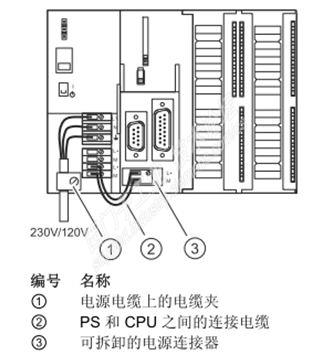 2 S7-300 PLC系统的接地规范 (1) 电源模板(PS307)的接地要求 对于电源模板,供电均采用220V/120V交流电源,注意电源需要连接PE线。电源模板输出为CPU及模板提供24VDC电源(图2-2)。 图2-2 PS电源和CPU连接示意图