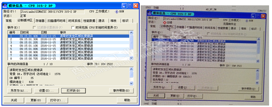 关于第一次遇到OB121编程错误的处理 昨天到一个项目地调试的时候,突然发现S7-300PLC报SF故障,于是联机发现报OB121编程故障,如下图: 个人感觉很奇怪,因为之前一直运行OK,难道是问题一直有,没人发现? 手机上网查询找答案的相关问题后,联机PLC在线删除了OB121,触发PLC停机,然后找到了故障点,修改地址后重新下载,启动PLC后正常。 事故处理后细想,其实距离不让PLC停机就找到故障点只差最后一步了。因为本人通过事件的触发时间,几乎间隔100ms触发一次,初步判断应该在OB35,因为是背景DB,也在调用FB块的地方查看有没有什么1576出现过,无奈眼拙没找到。其实只要通过编辑里的查找替换,输入1576,就可以迅速定位到错误地址。 分析报警信息,其实已经说的很明白,只是以前没经历过,不能理解。 读取时发生区域长度错误:读取操作,指令的左边。 背景DB,双字访问,访问地址:1576:调用FB时背景数据赋值错误,错误地址是DBD1576。 为了验证以下的想法,通过仿真做了一下试验: 1、 能否通过交叉参考定位到错误点。 2、 能否在PLC不停机的情况下让PLC正常。 3、 如果OB121发生在OB1里,PLC的工作情况怎样? 等等 结果如下: 1、仿真时发现,报警信息可以通过“打开块”直接进入故障点,而PLC的“打开块”是灰色的。 2、仿真时的CPU显示正常,实际PLC显示出错。 3、交叉参考不能定位DBD1576。 4、通过交叉参考查找程序结构,看哪些块调用FB,可在响应的程序块中查找定位。 有点搞笑,验证到最后,最简单的不让PLC停机,直接查找到故障点,就是通过仿真,修改问题程序后直接下载到PLC中。 需要说明,仿真的时候没办法下载程序。 好吧,我再一次验证了仿真的重要性~