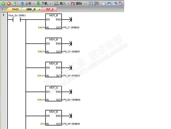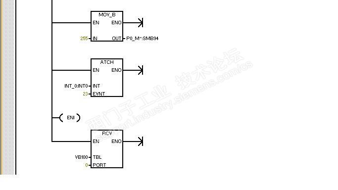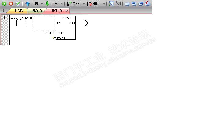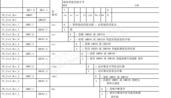 说说西门子200smart modbus自由口通讯的那些事3 上文说到发送指令XMT及串口调试软件的一些简单应用实例,其目的也是为了理解这个发送指令,熟悉这个指令的常规应用及注意事项或者说是一些特性。我理解modbus自由口通讯自开始以来就一直以打乒乓球理论来理解通讯的,球一旦发过球台中间的网接触对方球台上就需要对方来回应了。记得小时候常常在一块大门板上打球,一些年长的球友每发一个球过来,我每次只要用球拍一接触飞过来的球,这个球就不按我想的运动轨迹回过去,往往被弹飞掉。有一次,我的一个要好同学告诉了我其中的窍门,看对方发球的手势。当对方用力发一个削球过来,你可以将球拍以反方向侧板回击,一试,固然如此,就记下了这个回球的方法,现在应用到这个通讯编程上还仍然可以借鉴。 关于接收指令RCV的应用,如果仅仅理解该指令,到是与发送指令XMT很相似,可问题的关键的如何应答(接收)是一门大的学问了,也是广大同行一直来在做探究的根源。 接收指令RCV: TBL:指定了数据接收后存放的寄存器区域,和发送指令XMT一样,第一个数据地址存放着接收所规约的数据个数,最大接收数据个数255个。 PORT:指定接收数据的通讯口,集成的通讯口填0口,扩展的信号板填1口,这个与发送指令XMT也完全一致。 指令调用与发送指令一致,沿触发或中断子程序中调用就可以了。 假设,我通过串口调试软件的发送区,发送一串字符“Siemens”到200smart的RCV指令中,指令规约的字符串地址区是VB101开始的7个字节储存区,VB100存放的是接收字符的个数,采用手动发送字符串模式。通讯口参数设置SMB30=16#09 在调用接收指令前先定义好接收指令的控制字节SMB87: 启用起始符和结束符的方式: 根据需要设置SMB87控制字节:SM87.7 = 1(必须设置为1);SM87.6 = 1;SM87.5 = 1,即启用起始符(SMB88);启用结束符(SMB89);启用接收信息功能(SM87.7)。 具体设置: 1) SMB88 = 16# 3A(起始符)可选 2) SMB89 = 16# 0A(结束符)可选 3) SMW94 = 255 (个数据/byte)这个是必填项目 4) 不启用信息定时器和空闲线定时器(空闲线定时器SMW90;信息定时器SMW92) 5) 开接收完成中断,中断事件号:23(port0口);(中断事件号:24(prot1口)对应) 6) 根据接收控制字节设置SMB87 = 16# E0 程序例子: 初始化接收子程序: 中断程序: 主程序: 用起始符和结束符方式的程序就编写完成了,打开串口调试软件,设置通讯参数与SMB30一致,并将要让PLC接收的以起始符开始的字符写入到串口调试软件的发送区,(3A 73 69 65 6D 65 6E 73 0A),其中,红色字体为实际“Siemens”的字符,3A、0A分别为起始符和结束符。图示: 手动点击发送按钮后,监控“状态图表”: 串口调试软件发送的“Siemens”字符已成功地被PLC所接收到,用起始符和结束符编辑的小程序告诉我们编写接收指令RCV远比发送指令XMT要稍微复杂的多,首先需要定义接收指令的控制字节,按控制字节的要求选择用什么方式作为接收指令数据的开始和结束;其次,必须定义接收数据的个数,这个在论坛中时有看到无法接收数据的原因,是没有定义这个接收数据个数的标志字节SMB94,最后是定义中断和开中断指令与启用接收指令。 启用信息定时器和起始符的方式: 根据启用信息定时器和起始符要求,得:SMB87 = 16# CC 起始符SMB88 = 16# 3A 信息定时器设置:30mS(根据接收的字符长度计算) 其余的与启用起始符和结束符例子程序定义一致。 程序: 初始化子程序: 中断程序: 主程序调用初始化子程序: 打开串口调试软件,输入待发送的字符(3A 73 69 65 6D 65 6E 73 ),点击手动发送,监控“状态图标”,图示: 字符信息被PLC成功接收到。连续、、、、、、 |