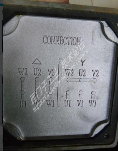 正常情况下4KW以上鼠笼电机接线都是三角形接法的,一般情况下超过15KW三角形接法的电机如果不是使用软启动器,变频器,自藕降压启动等等,就可能使用很常用星三角降压启动,这种启动方式简单,只是适用轻载或空载启动,一般三角形接法的电机接线盒图片。 星三角启动实际就是将原先在接线盒内的短接片,一般都是使用三个接触器触头来代替,人为的启动时候接成星形,此时通过每相绕组的电压是220V,使用时间继电器延时时间到后转换成三角形接法,此时通过每相绕组的电压就是额定电压380V,所以接线时候需要将接线盒内短接片拆除。 星形启动接法很简单,将U1,V1,W1,分别接入L1,L2,L3,将U2,V2,W2短接在一起就行了, 启动完成转换成三角形接法时,就要注意了,如果U2,V2,W2相序对应不对就会产生反转,不转,缺相运行。其中反转及缺相运行对电机危害很大。 |