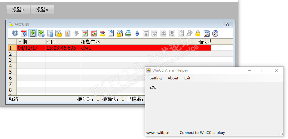 V2.0:支持自定义画面名称和报警控件名称! CC_Alarm_Helper.exe软件可以自动获取WinCC报警控件中的消息文本并朗读,而不是播放某种预先录制好的音乐。 下载地址: https://pan.baidu.com/s/1dF3gpt3 软件的界面比较简单,本身也是可有可无的,运行时会自动最小化在托盘