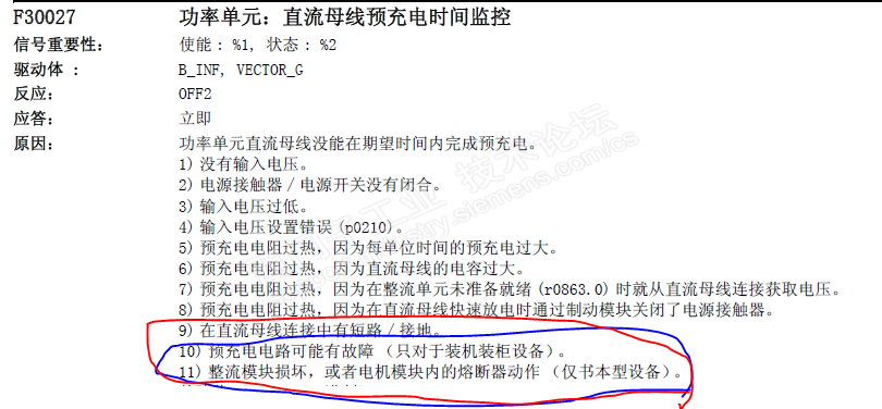 主题:回复:G150变频器出现F7802和F30027报警 ,有谁遇到过这样的故障吗?如果进线电压没有,直接启动装置,就报这个故障