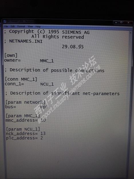 主题:回复:840D OPI节点地址有办法查看地址: 首先,使用例如5711的连接协议时,先将其属性中的 “PC/PG is the only master on bus“ 勾选上,这个不 勾,下边的链接就要报错了; 其次,确定当前使用的网络的波特率,MPI是187.5K,OPI是1.5M; 最后,断开PCU的连接,使用5711单独连PCU,这个时候,再在5711MPI的诊断画面,下方Bus Nodes下边的Read按键,点击它,读出来的地址,就是其实际的地址。 用这个方法,可以分别读出所有的部件的确切地址,而不用只是一张全图中,单个猜测其地址分别对应哪个部件。这样,NCU是什么地址,也就一目了然了。 其实,这里需要的是匹配OP030的地址,本身NCU是13是可以通讯的,但是不匹配OP030的设定地址,无法通讯OP030。如果你有GROB关于的OP030的密码,可以更改其匹配地址,那13也无可厚非,可惜我没有,只能老老实实改NCU的OPI为2,实现两者的匹配,这也是GROB本身出货时的地址。 好了,感觉啰啰嗦嗦说了很多,也不知道对你有作用没,见谅见谅。 |