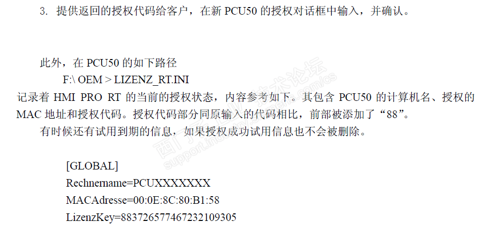 1、  在咨询西门子和机床厂家人员后需要那张黑白硬板纸(即授权书),顺带说一下,这个没多少人关注的,可能很多朋友都找不到了,现在告诉大家,这个真的很重要)上的序列号,在西门子专门提供的网站上,键入该序列号和mac地址,然后西门子德国会第一时间回复你,如系列号在其数据库中,则邮件回复告诉你授权,你的问题解决。没有授权证书的话,目前还没什么好办法,