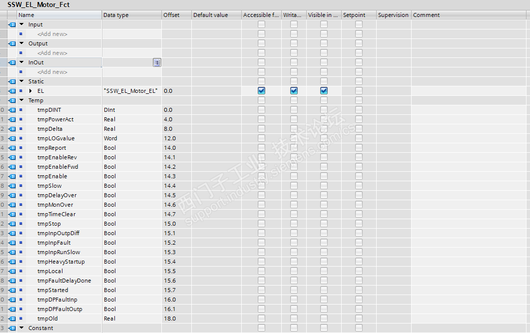 电机控制FB块,SSW_EL_Motor_Fct;电机的UDT:SSW_EL_Motor_EL;