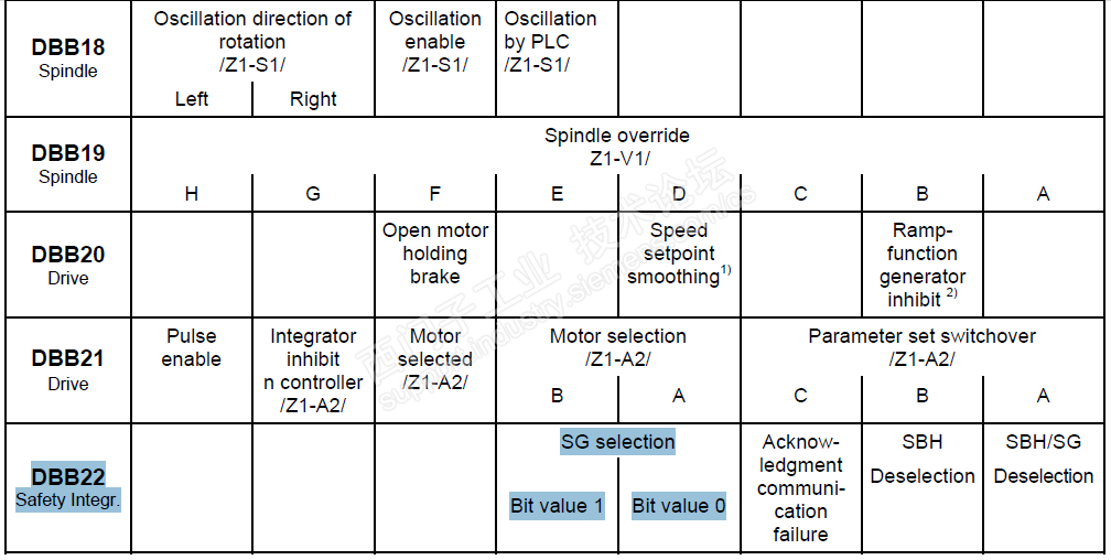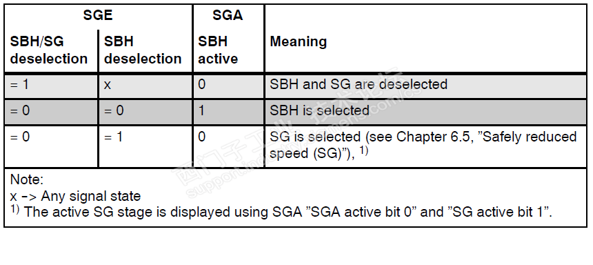 兄弟们,俺胡汉三又回来啦^_^。之前有项目在身,忙了一阵子,哈哈其实都是托词,归根结底,就是懒病犯了。最近偷得浮生半日闲,某根筋搭错了,终于又提起懒散的精神,觉得该写点什么了。今天来讨论一下安全集成中的SG。 SG,是Safe Reduced Speed的德文缩写,安全减速速度,对应ISO标准的Safe Limited Speed,安全速度极限,其实针对的都是一个东西。 SG的选择,有个前提,就是要在之前的SBH/SG和SBH的选择中,要选择SG selected。对应的NC参数是MD36970和MD36971,对应的PLC地址是DB3x.DBB22。