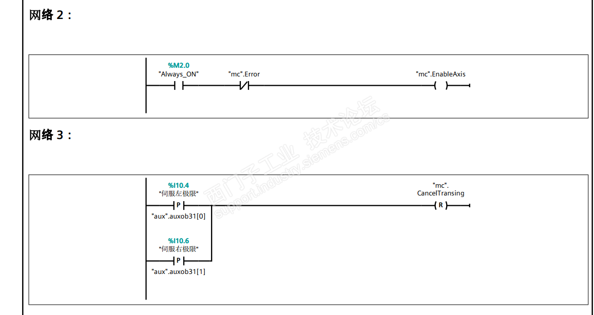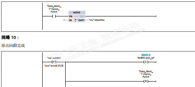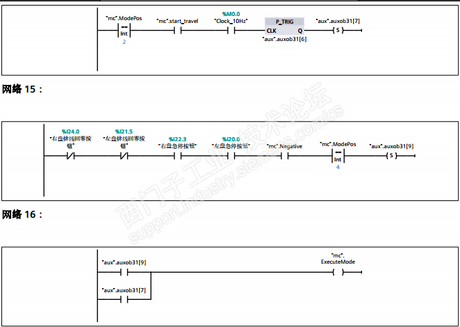 以上程序实现故障复位,原点回归和绝对定位功能。伺服驱动器需要设置为EPOS控制,报文为111.根据需要设置好伺服其它参数。 此程序以上只是伺服的运动方式的切换部份,速度和位置传送部分另外的子程序,不过就是随工艺更改的值传送到FB284的位置和速度输入引脚而已,就不贴出来了。工艺要求是进行绝对定位的时候的目标位置值和实时的速度值都需要随时改变。也就是伺服在往目标位置运行时,更改了下个位置,伺服立即响应执行下一个目标,伺服往目标位置运行的速度也是一旦需要改变,立即执行新的速度值往目标速度,而不是走完当前目标值再必变位置和速度,也就是实现西门子所说的超驰。 其实实时改变速度,可以把config.x8置1就可以 |