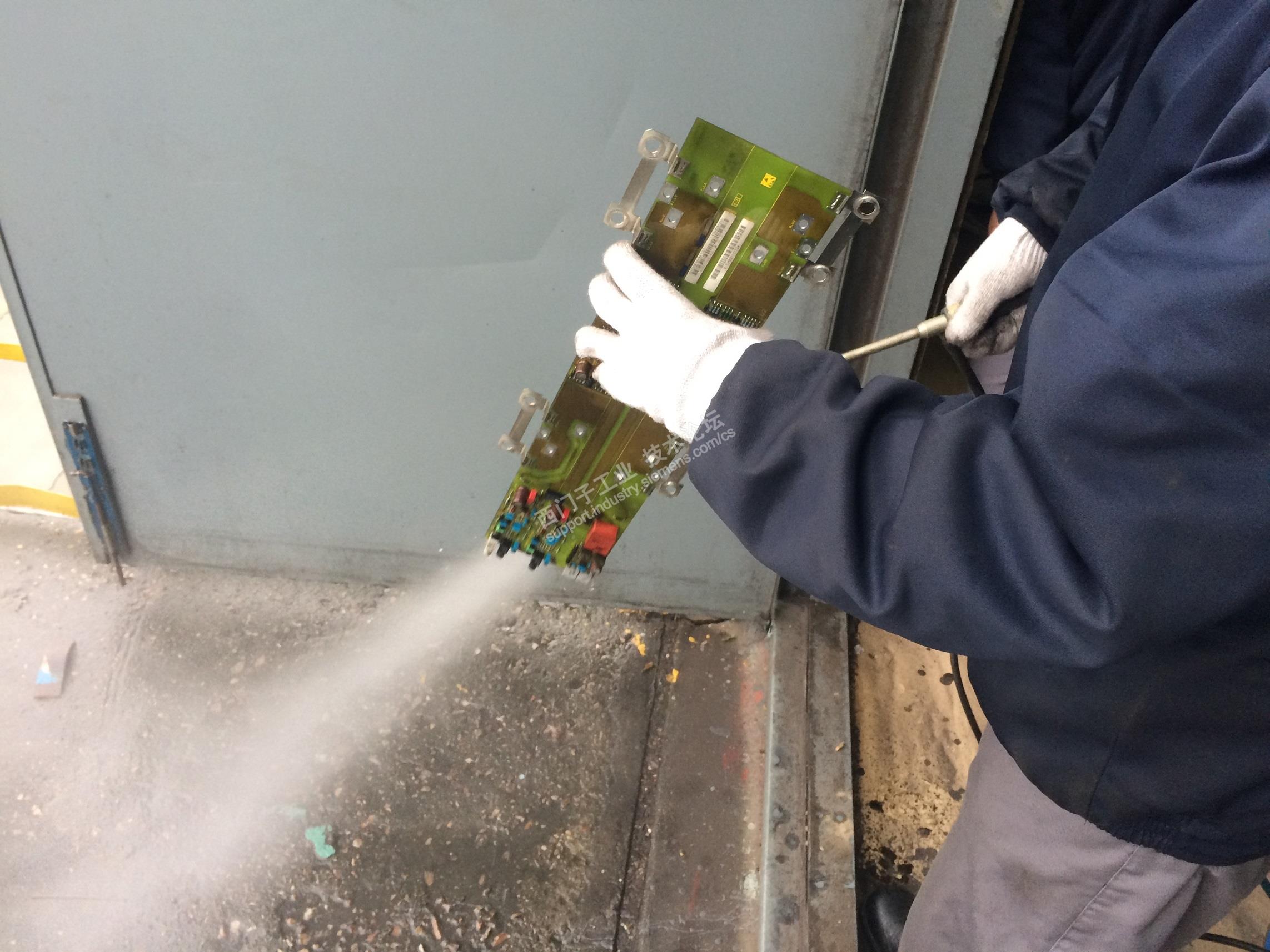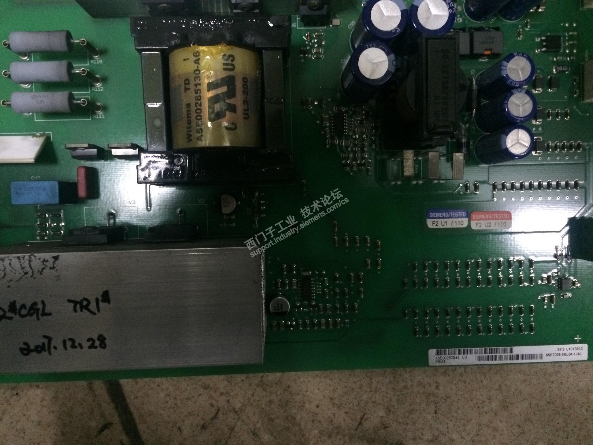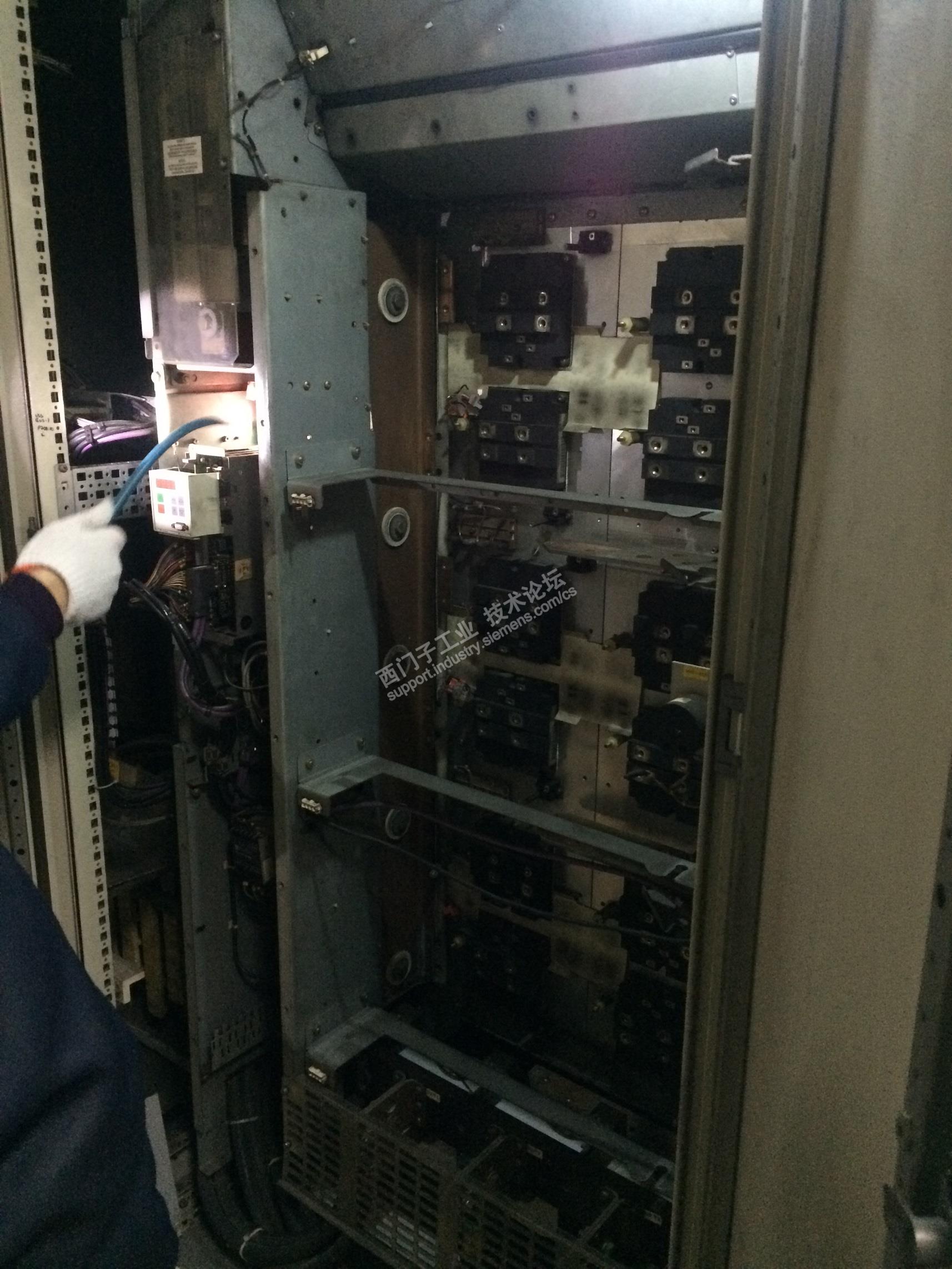 朋友请吃晚饭,于是驾车前去,还没到目的地,公司AnyCall(现场电话)过来了,说一台530KW的6SE70变频器报F025故障,可以复位,但运行十几分钟又会报。这是不让吃饭的节奏啊,询问完情况后,决定先临时这么运行着。因为生产线是连续运行,不能停车,且这台变频器是收卷机,不是很影响,再过几天检修时处理(先吃晚饭)。 终于熬到检修,检查电源板、CUVC板电源正常(CUVC:X101-1/2端子24V正常,X9:1/2端子正常),因之前别的变频器出现过F027的故障,是电流互感器的问题,因此,直接拆电流互感器,测量出来C相的互感器与其它2相的电阻不一样(A/B相都是4MΩ/0.9KΩ/4KΩ,C相是4MΩ/0.4KΩ/4KΩ),于是,更换C相电流互感器,安装好运行一个月一切正常。以为故障就这么解决了,没想到就在放假前几天,故障又出现了,不过这次是报F027。 再次把电流互感器拆出来检查,发现又是C相有问题,怀疑是IVI板有问题(互感器是接到IVI板的),于是,更换IVI板,顺便把PSU板也换了,上24V电,PMU报A017,并且008脉冲封锁。查报警代码,安全停车。我们没有安全选件板啊,并且008脉冲封锁是通过P555/P556/557来控制的,怀疑是没安装好,把IVI板上的光纤重新插拔了一遍,好了。上电运行,先观察几天。第二天一早,现场说又008和A017了,怀疑还是硬件有问题(之前在论坛看到过SIEMENS人员发过的帖子,008脉冲封锁,并有A017闪烁出现,一般是硬件出问题了)。 这板子都换了,就差IGD板和IGBT上的缓冲板和IGBT了。这时,已接近下班,明天就是元旦放假,看来这个元旦得加班了。为了第二天能顺利解决问题(能够少加班),晚上在论坛搜索A017的帖子,发现很多说是IDG板有问题,也有说是PSU板的问题,还有甚至是IGBT炸掉的。这一看,问题大了,看来明天得把变频器拆散架了。 工具都已准备好,目标直接拆到IGBT,用万用表检查IGBT,没有坏,那就剩IGD了,可这个大功率的IGD板子是三相分开的,不是一整张大电路板,查备件,只有一块,这个该换哪一相好?而且,型号的最后一位数字还不一样。最后决定,先把电路板清洗(板子的元器件上还是有很多灰的),再装回去测试,不行就把另一条生产线的同功率变频器拆过来。 于是,开始清洗板子,吹灰,晾干,一个上午很快就过去了。下午吃过饭,顾不上休息,直接安装。最后一颗螺丝安装结束,见证奇迹的时刻到了,24V电源合上,PMU自检,015接着008,等待十几秒,没有A017,心里一阵窃喜,让生产复位驱动,PMU显示011,心里的石头终于落地了。 回头总结,原因应该还是在IDG上,可能是灰尘太多,导致故障。2个多月的故障终于解决了。 以下是这次维修的照片: