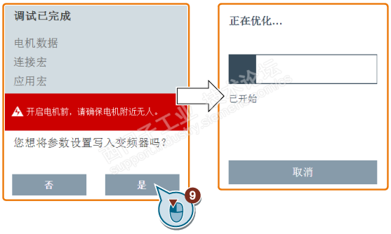 上次介绍了SINAMICS V20智能连接模块的设备连接,以及可以对变频器进行快速调试、参数设置、JOG、监控、诊断、备份与恢复等操作。今天给大家详细介绍一下如何使用智能连接模块对变频器进行快速调试。 在 PC 或移动设备浏览器的地址栏中输入网址(http://192.168.1.1)打开 V20 网页概览如下: ① 链接状态显示 ② 故障/报警显示 ③ 快速调试向导 ④ 参数设置 ⑤ 点动/手动模式下的电机试运行 ⑥ 变频器状态监控 ⑦ 诊断(故障、报警和I/O状态) ⑧ 数据备份&恢复 ⑨ 导航侧边栏 ⑩ 返回上一级页面 ? 可选Web访问设置 ? 变频器识别数据 ? 服务支持信息 下面介绍一下快速调试操作步骤 1.从主页或导航侧边栏中选择快速调试向导的图标,打开快速调试的网页。 2.按照以下步骤进行操作,快速调试会同时更改以下三组参数。 3.若当前变频器设置未知,可恢复变频器的出厂设置。 4.更改电机参数,有三种修改的方法。 · 直接选择所需参数 · 移动滑块选择所需值 · 使用屏幕上的数字小键盘 5.选择所需连接宏 6.选择所需应用宏 7.确认开始将参数设置写入变频器,SINAMICS V20 智能连接模块随即开始自动优化进程。 8.以下窗口出现时确认快速调试进程完成,如果网页显示优化失败可选择再次优化。 这样,就完成了变频器的快速调试。 对于智能连接模块的详细信息,请参考SINAMICS V20操作手册,下载地址如下: https://support.industry.siemens.com/cs/cn/zh/view/109751304 |