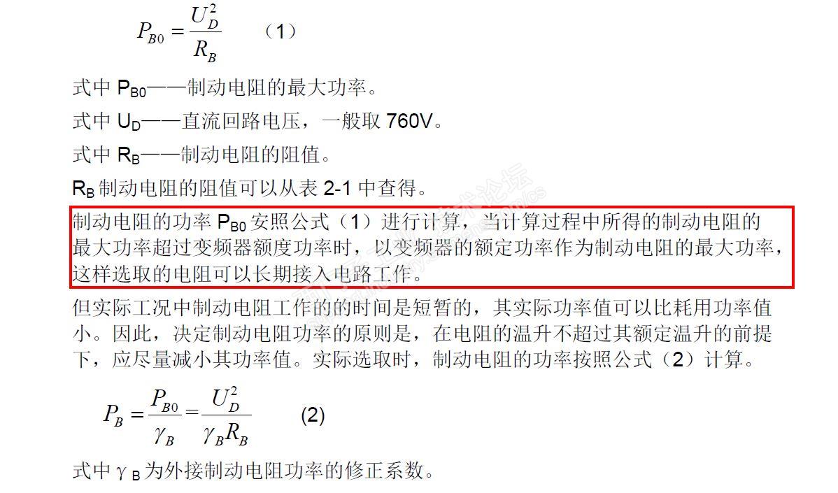 主题:回复:G120 2象限 长期发电运行工况的制动电阻选型当制动电阻的阻值定了以后,功率越大越好。 做为制动电阻来说,如果有可能对变频器赞成损害的,只有阻值一个参数,阻值 太小会导致直流母线电流过大,损坏整流元件。 文档中的那个描述有点饶舌,本意是制动电阻值不要太小,但给人的感觉却是功率更关键。 其实,你想,阻值定了,是不是功率就定了?