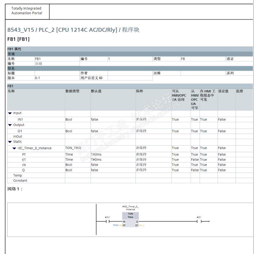 主题:回复:PORTAL编程题,可能与指针和间接寻址有关表示看不懂你在做什么。 为什么假设了2S的延时呢? 是假设这里有逻辑关系, 现在举例是延时, 而在实际应用中, 会有更复杂的逻辑关系。 但总的来说,可以封装在一个FB块里面,固定好。 最终只是接口部分参数化。 而你把定时都给省了, 那程序还有什么意义呢? FB1: 固定调用的时候,FC1: 然后现在的目标就是把上面的固定调用改为动态调用, 两次。 别在我的FB1上动心思, 就只在两次调用中, 用参数方式实现。
