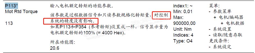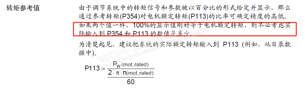 这是手册中有关转矩、参考转矩及额定电流的描述,比较一下,就大概可以理解了。参与控制的只是百分量,不是实际值大小。 至于你怎么规格化 、怎么在上位系统显示正确的转矩,也很简单,按比例乘除就行了。比如你的电机额定转矩是100Nm,但是P113/P354设置的是1,那你就直接把读上的来数乘100就可以了。