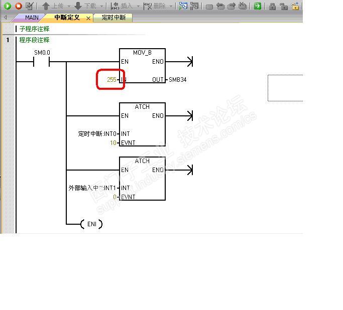 如何在plc工作机制下最大限度的捕捉到输入状态信息 做plc控制工作的同事都知道plc的工作机制(扫描机制),是自左(母线)而右(线圈参考点)、自上而下(程序的标号顺序)。一个输入信号如果在一个扫描周期内反复变换状态,plc能够识别到的信息应该是距用户程序结束处END位置处的状态值,这样反复循环扫描采集、运算处理、运算结果做输出是plc最基本的工作机制。 如果是利用200(200 smart)plc做系统控制,那么,系统有现成的几个输入上升沿和下降沿中断供用户调用:以200 samrt为例的输入上升、下降沿中断列表: 集成cpu本机的输入: 信号板输入: 一个200 smart plc最多可以支持6个(不包含经济型,没有扩展信号板)输入地址的上升沿和下降沿中断,一般的调用应该是可以满足需求了的。可是,如果系统需要组态高速计数器项目或需要大于6个输入地址中断的系统中应用情况下,编程还是有一些难度的。 那么,是否有一种方式可以在一定程度上弥补上述硬件的“不足”,使plc发挥到“极致”?答案当然是可以试试的,验证与实际的外部输入中断会丢失输入信息的区别。 编程思路: 1) 定义一个循环定时中断,当然为了捕捉到plc工作机制下的最大量,循环定时中断时间只能的允许范围内的最小值,200 smart循环定时中断的时间范围(1~255mS),显然只能选择最小循环定时单位1mS。 2) 在循环定时中断中编辑输入状态的记录功能,记录方式可以是指针移动记录地址存储状态编程或者是直接调用表格指令(AD_T_TBL),本验证不做存储能够验证的测试。 3) 调用外部输入I0.0的上升沿中断,作为与定时中断比较区别。 4) 2个中断进行比较,看结果的区别。 程序: 1) 创建一个工程项目,调用循环定时中断和外部输入I0.0上升沿中断: 2) 在主程序中调用: 3) 在各自的中断中编辑I0.0的输入状态值: 4) 将验证程序编译、保存后下载到plc中,按压外部输入按钮I0.0数次,看2个中断的记录差异,状态图表中监控: 按了200多次均能够同样捕捉到I0.0的状态值。 5) 如果把循环定时中断的时间调整到255mS最大值的情况又将如何? 显然,按压几次后,数值差异非常明显了,循环定时中断会丢失输入状态值。说明循环定时中断的时间设置过大(大于plc扫描周期值,很容易丢失输入状态值),这个验证结果也符合plc的工作机制。 由于这次测试的plc的经济型的,无法编辑高速脉冲输出测试高速输入信号情况下的输入状态值差异,验证只能暂时中断了,中断应用已经中毒了,哈哈。看来,利用中断还是可以回避由plc扫描周期捕捉外部输入信息的一种编程途径,虽然验证程序尚存在一些局限性。 首先感谢“S”侠,今天下午看到你的回复,提示在执行中断子程序时,输入的PIW与IW的概念问题,因一时粗心大意没有考虑到这些问题,在此先行谢过。 针对于你这个概念的问题,我又单独做了一个验证,程序仍然是原程序,只是重新定义的循环定时中断的周期为255(最大循环定时中断),并创建一个I0.0立即输入与IB0做比较。 程序仿真: 增加循环定时中断时间的目的是让输入捕捉由于循环周期变长,使捕捉机会少一些,更能够反映立即输入的优势。 外部I0.0端子连接的按钮按压200次后,没有明显看到MW0与MW4的差异。 在中断程序中,这个普通的输入也能够带“立即”功能?查遍200 smart系统手册,关于中断只是描述了它能够优先处理比主程序更高的权限,没有明确是对输入、输出的优先权限,再次连续按压输入I0.0,还是没有明显的差异,一时想不起来用什么方式能够编辑一个有效的程序来判断之间的区别,只能暂时放下继续验证了。 |