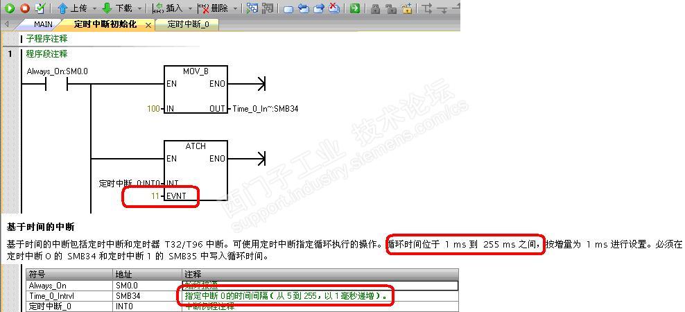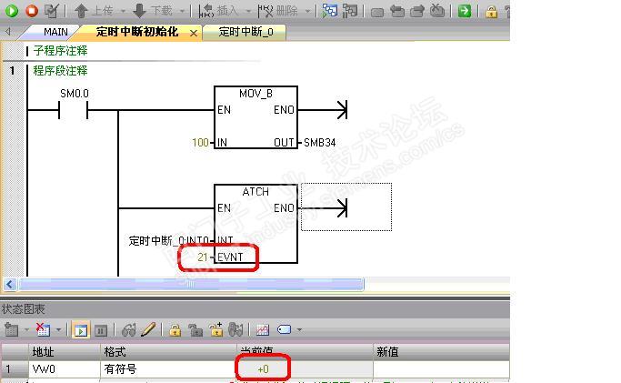 主题:回复:关于定时中断与中断事件号的对应关系大家好! 近段时间一直在忙于抢修一台设备,没有及时验证。 这个问题是我没有完全理解定时中断连接所致,因为开始定义定时中断时,SMB34特意对应定时中断事件号11(原本SMB34应该对应的是定时中断事件号10),造成这2个定时中断均没有完整赋值,那样系统就按1mS时间定义,验证时的错误仅仅是看数据而不去想定时中断的时间是否符合定义的100mS。
