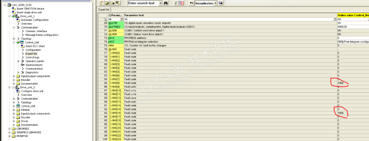 主题:回复:G150变频器的故障诊断过程。前端时间有个S120伺服用报的Drivelink什么的通讯之类的故障,复位不了,现场网线插口检查没问题,因为以前没接触过SIMIOTION,不知道怎么做,没有入手点,断电试试吧,然后断电重新上电就正常了,现在也不知道为啥.....