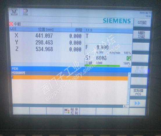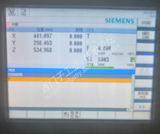 车间 一台828D系统在运行过程中会报:26106-轴AX1编码器1没有找到;231135-轴AX1 SERVO1;25201-轴AX1伺服故障。 设备在断电重启之后又可以工作。在接到报修后到达现场首先问了一下操作工实际的情况,操作工提供的情况是故障已发生多次但每次关电源重启后故障可恢复,根据现场的报警和操作工反应的情况分析得出: 1:编码器接线可能有松动 接触不良。 2:编码器与主轴的链接有松动,联轴器 损坏。 随后开始进行维修检查,首先检查编码器连线,连接线俩头是接插件链接良好未见松动。接着检查编码器与主轴的链接,发现链接的紧固螺丝有一点松动, 链接主轴的螺丝在中间的盖板下方 于是紧固螺丝安装好散热风扇,检查无误后上电复位试机,将主轴转速设置为1000,启动运行正常;设置为6000,运行正常;设置为8000,运行正常. 转速8000r/min 转速6000r/min