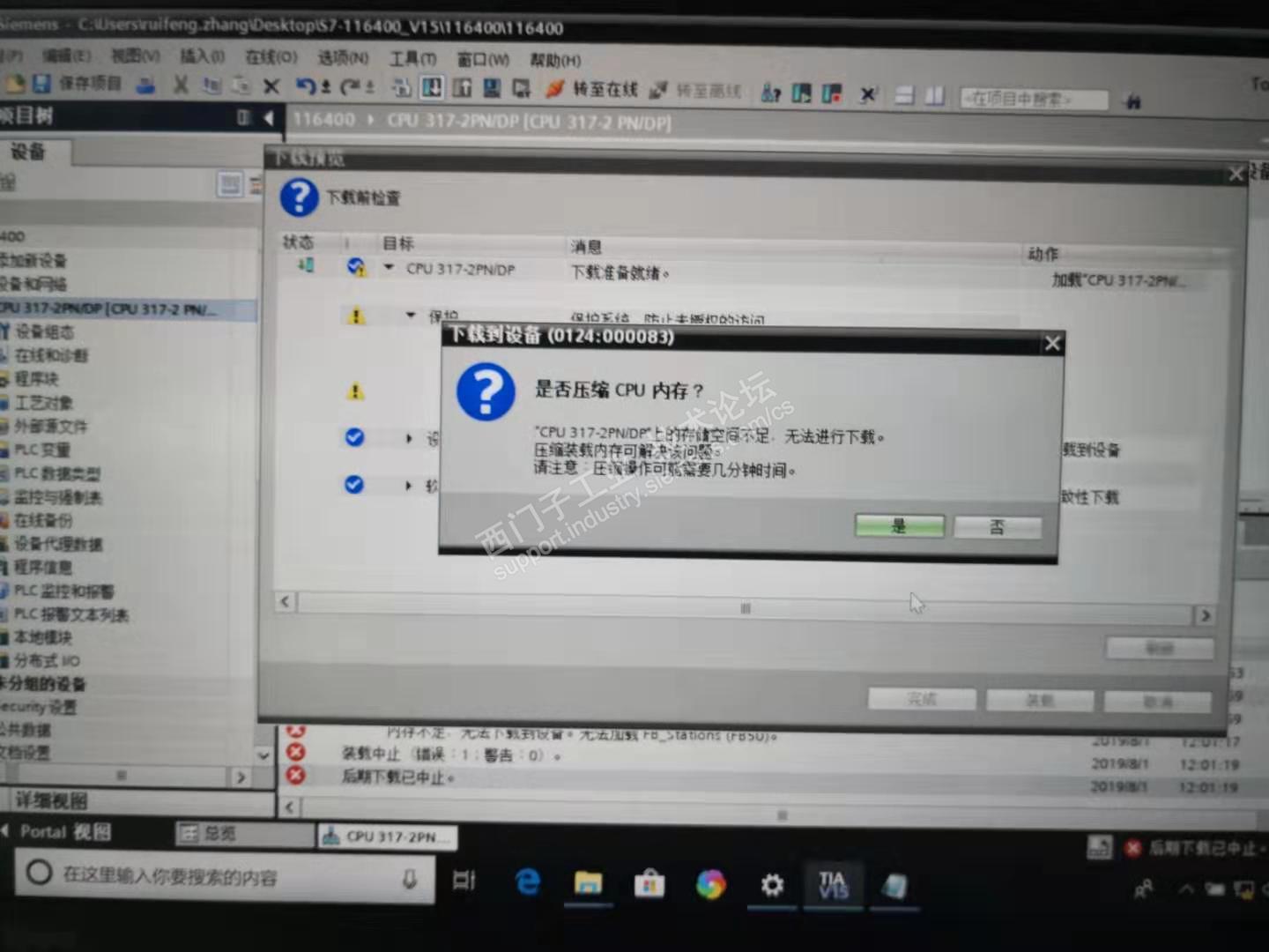 在下载硬件组态时 提示存储空间,详见图片;