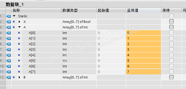主题:回复:S7 系列数组元素依次向前或向后移动的便捷方法Move_BLK(块移动),A[0]->A[1] of 7;原本担心同一个数组区间重叠,仿真了一下没问题: A[0..7] 原始数据如上图,执行一次块移动后 块移动程序