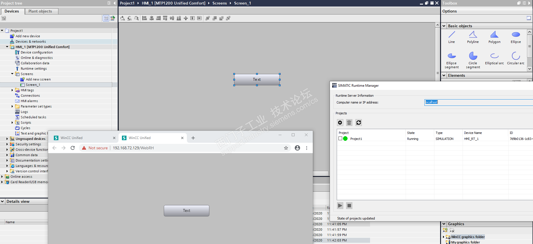 安装V16的时候是需要IIS,因为啥也不懂就都勾上了(这个过程不可逆,我试着把不用的勾去掉重启电脑,但是RT manger还是有问题),但是这样做就使得Unified的触摸屏无法仿真,以及Runtime Manger中根本看不到项目。