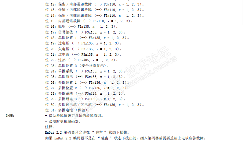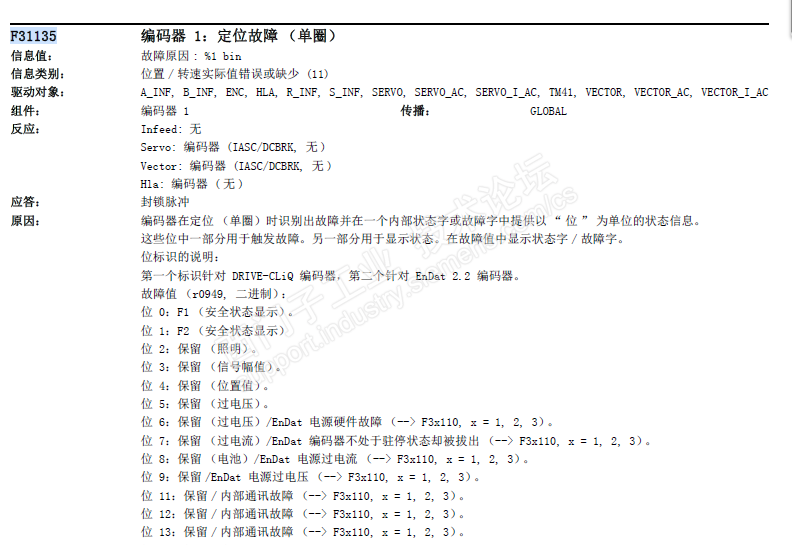 对F31135报警查阅手册后,提示可以通过故障值来判断具体的故障原因