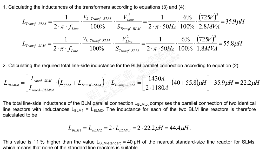 另外讨论一下不同功率的整流单元并联的情况: 按照西门子的要求,SLM上端需配备4%的进线电抗器,而BLM需要配备2%的进线电抗器,但是由于不同功率的BLM跟SLM并联,而又要充分发挥整流单元的能力,则需要按照容量选择BLM的进线电抗器(在这里进线电抗器的作用主要是分配电流),如果像上边两种功率相近的整流单元并联,则BLM跟SLM配相同的4%的进线电抗器,从而达到4台装置电流相同的效果。如果功率相差较远,一般成本考虑都是BLM>SLM,所以需要按照两者的功率(电流)之比配置BLM前端的进线电抗器,从而达到SLM/BLM之间的电流分配。下边是一个并联的例子,大家可以看看: |