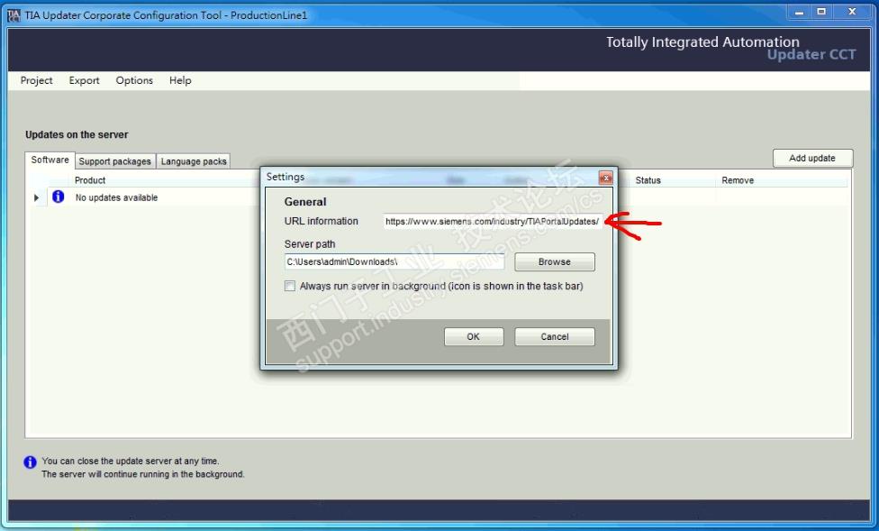 安裝完後開啟TIA Updater Corporate Configuration Tool就可以更新了 update server url以下兩種測試都可以用