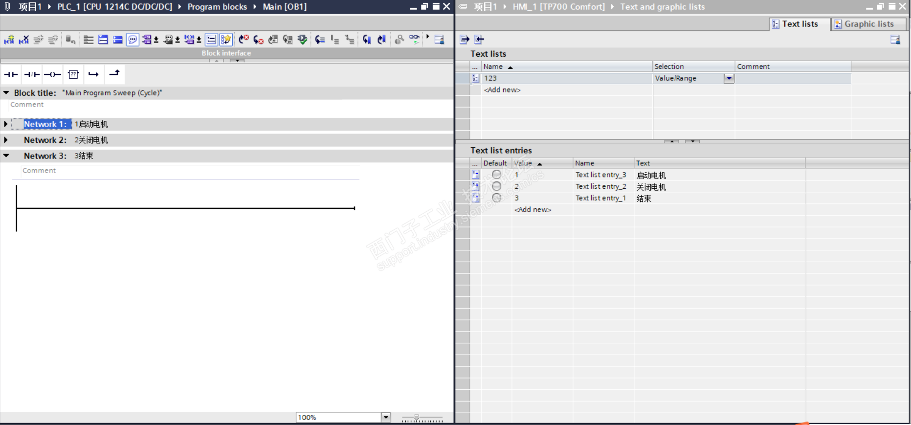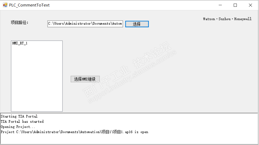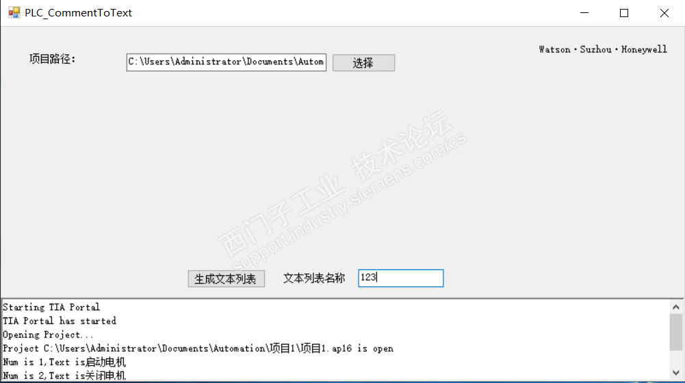 1500可以使用Graph的控件进行诊断,但是1200想要查看当前状态一般是使用文本列表,所以需要把PLC的注释复制到HMI的文本列表中。 我通过Openness写了个工具自动生成文本列表 ①版本为V16。 ②PLC与HMI需要完全编译再使用,支持1200/1500中的OB/FC/FB,精简精致面板。 ③PLC的程序注释以数字开始,比如: 100自动运行开始 110气缸去工作位 120气缸去基本位 130电机启动 ④如何添加权限查看帮助-向“Siemens TIA Openness”用户组添加用户。 ⑤对程序备份,如有丢失概不负责。 1.选择项目路径-点击开始生成 2.打开项目之后,选择需要读取注释的PLC 3.选择块 4.选择HMI 5.输入文本列表名称,点击生成 6.查看生成的文本列表 https://www.bilibili.com/video/BV1Dy4y1v7kg 2020年12月28日更新 链接已删除 2020年12月29日更新 链接:https://pan.baidu.com/s/1pniw1JtGJn-aNDvCpWCMGw 提取码:58tm