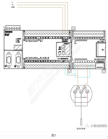 主题:PLC如何读取模拟量 下面我将用一个PLC检测室温的装置(下文称“装置”)来带大家了解PLC是如何读取模拟量的。在讲解装置之前,小编先带大家补一补模拟量的知识。模拟量种类一般有电压型和电流型两种(电压型:0~5V 0~10V;双极性-5V~5V,-2.5V~2.5V;电流型:0~24mA;)。电流型相比于电压型更稳定,抗干扰能力较强。模拟量的使用也是有分辨率的。一般有12bit和14bit两种分辨率。 装置选择S7-224XP,模拟量输入模块EM231(8路输入),温度传感器,温度变送器(-20~110℃,4~20mA)。 装置的原理是什么呢?接好线后,温度传感器将-20~110℃的温度转换成4~20mA的电流信号。电流信号通过模拟量输入模块EM231的6通道转换成数字量,该转换是由模块本身带有的AD转换器完成的。转换成的数字量存到地址AIW16中,经程序就可计算出温度传感器检测到的室温。那问题来了,为什么要把电流信号接到EM231的6通道?经6通道的模拟量转换成的数字量为什么存到地址AIW16中?通过下面操作与讲解,问题会慢慢被解决。 第一步:按照图1中的电气接线图接好线 第二步:设置拨码开关(设置拨码开关时需断电) 模拟量输入模块支持电压信号和电流信号输入,对于两种信号的选择由DIP开关设置,量程的选择也由DIP开关来完成,模拟量输入模块EM231的8路输入的组态开关表如图2所示。 其中SW1和SW2来选择电流输入模式。开关1打到ON状态开启通道6的电流输入模式;反之通道6处于电压模式。开关2打到ON状态开启通道7的电流输入模式;反之通道7处于电压模式。装置的DIP选择的选择如下:SW1(ON) SW2(OFF) SW3(ON) SW4(ON) SW5(OFF)。即对应6通道的模拟量输入类型为0~20mA。在EM231模块中只有6,7通道具有电流信号输入模式。设置好拨码开关后给PLC上电,并建立通信。 第三步:通过STEP 7-MicroWIN软件读取转换后的数字量 扩展模块与PLC连接后,地址分配以字节为单位,其字节地址由所在同类模块链中的位置决定,并以2点(4个字节)递增方式分配。比如,此装置中EM231是接入PLC的第一个模拟量输入模块,那么它的0通道分配的地址为VIW4,它的1通道分配的地址为AIW6……虽然AIW0和AIW2未用,也不可分配。这就是经6通道的模拟量转换成的数字量存到地址AIW16中的原因。使用状态表就可读取转换后的数字量了。 第四步:通过程序计算出室温 -20~110℃被温度变送器转换成4~20mA电流信号,4~20mA信号经量程为0~20mA的模拟量输入通道转化成0~32000的数字量。即数字量6400~32000对应温度-20~110℃。所以程序如下: -----------------------------------------------------------------------------------------------------------