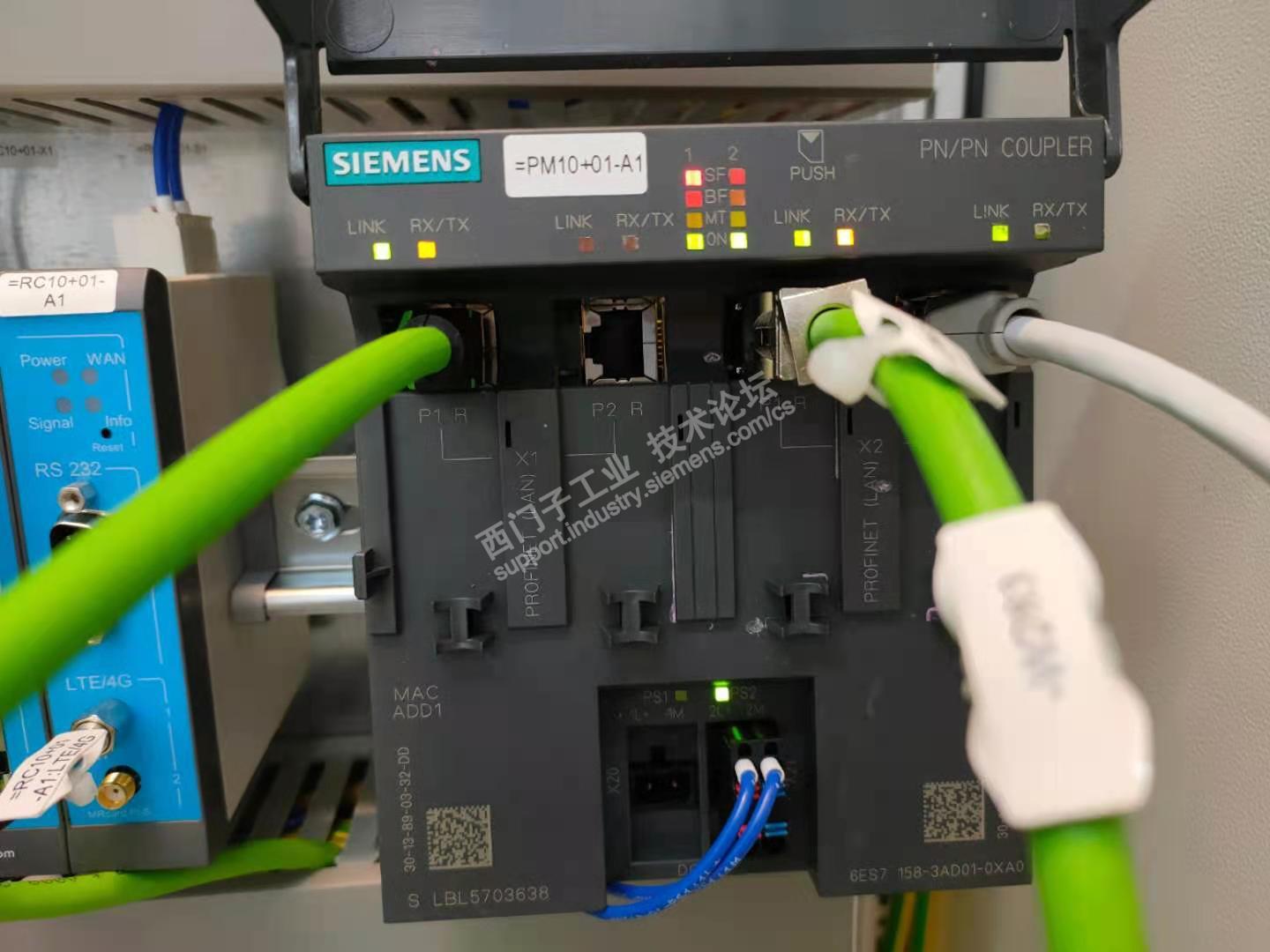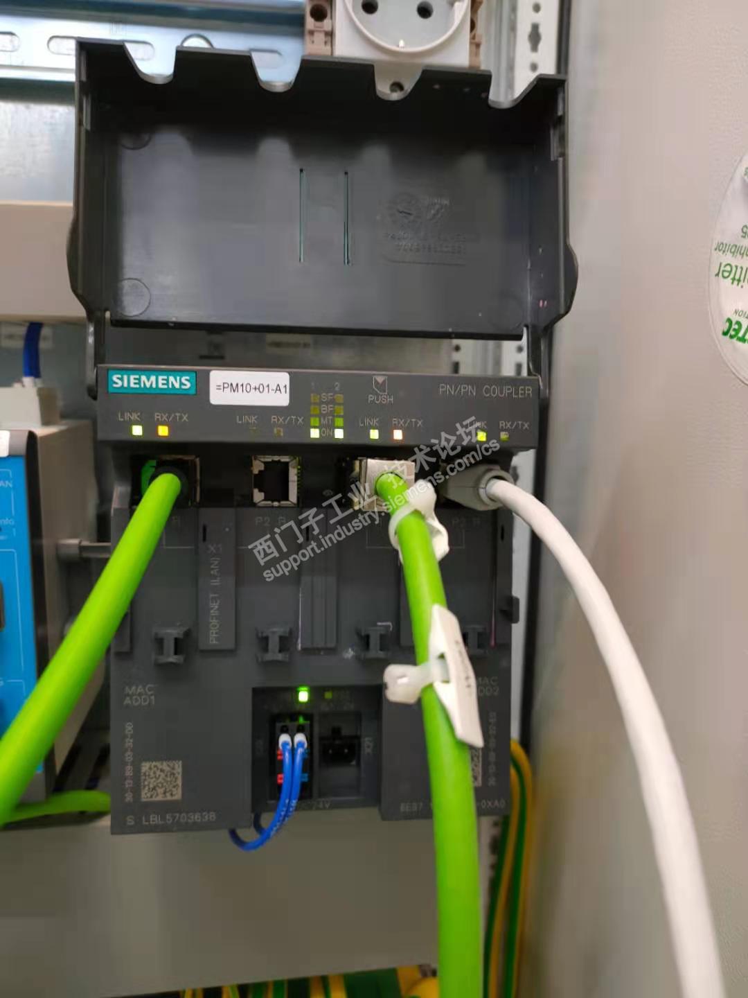 进入车间,两台德国设备映入眼帘,主机是我们德国公司的产品,比较高端;辅机是我们德国公司的供应商做的设备,但从外观上看,两台设备都挺不错的,德国制造品质还是很牛的。大概了解了一下,主机是319F的CPU,带的S120还有分布式IO,辅机是314CCPU,带的IO,两台设备都走的Profinet的协议,中间有一个PN/PN耦合器通讯在一起。319CPU的系统故障灯亮红灯,314的系统灯亮红灯,BUS1灯红灯闪,与之连接的耦合器的端口也在闪红灯, 这问题就比较明显了,90%是PN/PN耦合器的问题。拿出电脑开干,看见电脑里的step7我要哭了,德语的。之前这个设备一直是在德国工程师远程沟通,人家马上过圣诞节了也没整好,所以让我过来搞定,所以软件也是德国工程师远程装的,只能硬着头皮上了,整吧。 好久没用step7了,凭借着自己的记忆,找到了问题点,耦合器的IP地址和名字没有了,尝试了各种办法,怎么改也改不了,确认没有组态拓扑。已经折腾到了深夜11点,客户这么着急,不妨让他们帮忙找找有没有同型号的耦合器,第二天再来搞。第二天真就搞到了一个,晚上回去我也熟悉了一下step7的操作,IP地址及名字设置正确,还是报错,看了一下德语的缓冲区诊断说明,再看下硬件组态,组态的IO模块错了。都改完,重新上电,OK。 现场的同事和客户高兴坏了,还以为我是多狠的人物,就改了一个组态和IP。话又说回来,之前德国团队远程鼓捣10多天没整明白这个问题也是让我大跌眼镜,也有可能圣诞节浓郁的氛围使他们失去了自己原有的严谨的样子。