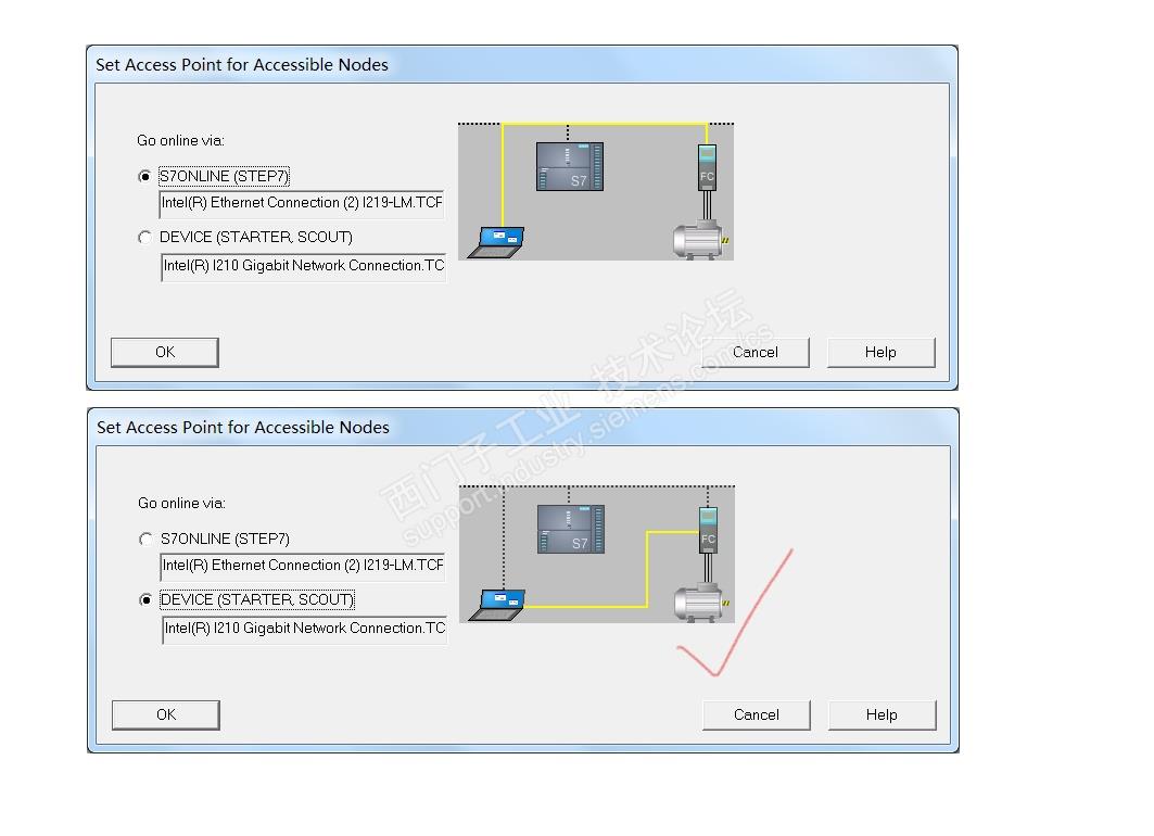 以前接触过SINAMIC驱动器,是经过300PLC路由连的。这条线用的1500,加密了,于是考虑直连,这个starter软件上可以选,比较直观。 现场看到有网线口,直接连。我连的是电源模块右边那个SIMOTION D445-2 DP/PN。