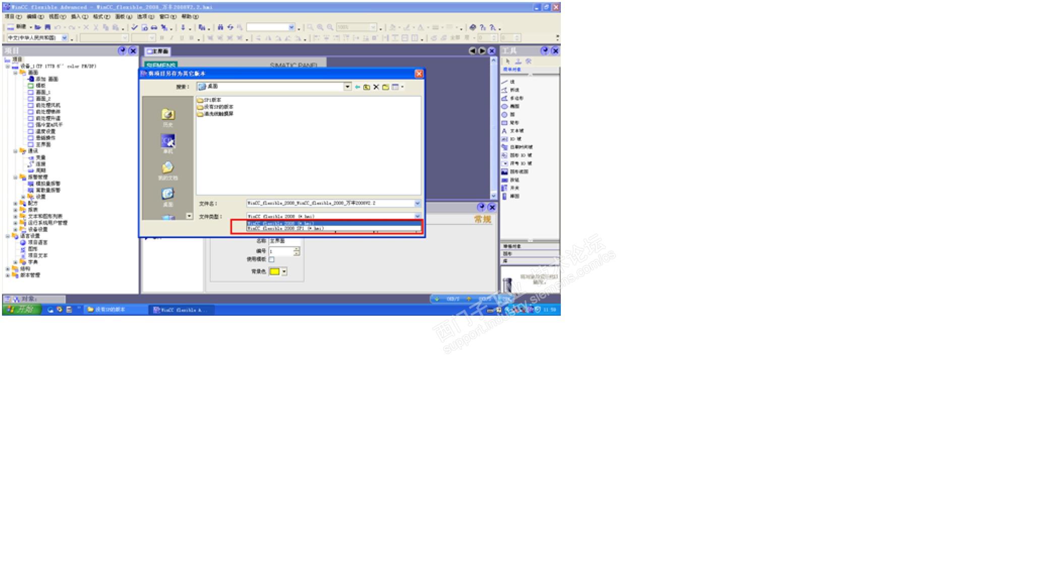 主题:一次TP177B 6’color PN/DP触摸屏的替换过程 一次TP177B 6’color PN/DP触摸屏的替换过程 前一些天,工厂说有一块触摸屏(TP177B 6’color PN/DP)被外力撞击碎掉故障了。到现场检查,该屏基本属于报废了,且早已经退市了的产品,已经没有修理的价值。于是,在自己的电脑上找了找几款可以替代的,与供应商沟通货源和货期后,最后确定采购替换为TP700 Comport,订货号:6AV2124-0GC01-0AX0。 在自己的电脑上,找了找之前备份的程序,找到原程序用wincc flexible 2008 sp2版本打开,把它另存版本只能是sp1的,图示: 而移植到protal V13 sp1的版本过程中,一直报警因wincc flexible 2008 sp2的软件版本没有以sp2的版本保存。这样,变成一个死循环了,wincc flexible 2008 sp2侧无法将程序另存为sp2的版本,能够保存的版本portal V13侧又报警说移植的原程序版本没有到达sp2及以上的版本,图示: 正好联系上供应商那边,有其它的wincc flexible 2008 sp3、4的版本安装着,通过微信与供应商沟通好问题的来龙去脉后,把原程序发送给供应商,让他代为另存sp2的程序版本。很快,那边就另存sp2的版本传送过来了。 借来一台安装有portal V13 SP1版本的软件,打开这个文件,先把设备类型修改为TP700 Comport并将它升级到V15的版本,备份好原程序后,下载,出现报警信息,图示: 报警信息提示,V15缺少映像文件,需要重新安装,在下载官方网站上找了找,确实有类似的提问,需要安装下载这个映像文件安装后,才可以。搜索官方资料链接:https://www.ad.siemens.com.cn/productportal/Prods/HMI/Comfortpanel/Q1_download/FAQ16_Comfortpanel_download_imagelost.html 看了看,文件也不算小,有几个G的容量。也懒得再下载了,直接换回V13版本下载吧。连接好设备的电源及通讯,上电将触摸屏的IP地址设置为192.168.0.10(子网掩码255.255.255.0)默认,开始连接下载,此时,系统提示需要固件降级操作,图示: 固件降级完成后,自动转成下载,图示: 以太网下载是目前最快的一种下载方式,很快下载完成,把触摸屏安装到原控制面板位置,图示: 触摸屏替换过程结束。 总结: 触摸屏替换原则上,我是按安装尺寸及功能来判断替换选择的,尽可能在前期采购前落实好替换的尺寸与原安装尺寸匹配一致,这样可以保持原控制门(柜)上的整体美观,且也可以减少一些安装上的麻烦,我接下来还有一块触摸屏的替换,是需要在原开孔尺寸上新增加一块过渡金属板。曾经类似的触摸屏原订货号为MP370 KEY,也是考虑到安装尺寸问题,最后选择了KTP1500 Cpmport,替换后,由于操作屏实际尺寸发生了较大的变化,因为程序页面较多,我是采用自适应方式总体感觉与原屏尺寸失真较大,这次,我改变一些选型方式,把待替换的MP377 KEY屏用6AV2124-1QC02-0AX1,另外,单独再增加一块过渡金属板。在软件移植升级过程中,需要多种软件之间的移植,升级、降级处理,这个过程最“烦”人,少不“留意”,出现的那种报警,需要这样转那样转的,只能根据实际报警提示信息处理,如本例我准备用V15版本下载,出现了缺少镜像文件的报警,我也不想安装这个文件,我改为V13 SP1版本的软件下载,就没有需要提示安装镜像文件了,反正,均是近期的版本,到时候备份也不是什么问题。 尤其是那些因版本较早期的,趁有机会先把移植的备份做做好,不要等到真正需要替换时手忙脚乱的操作。 |