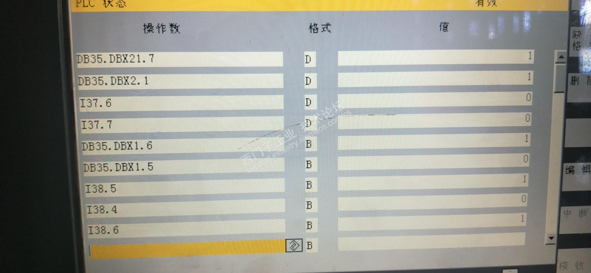 前几天,一个设备厂一台落地镗铣床报警C1轴主动编码器硬件出错;朋友打电话向我咨询;经过了解设备名称;TK6920数控落地镗铣床,系统840D;CI轴是主轴;设备外观如下: 我告诉朋友,检测主轴电机编码器是否有虚连的地方,朋友看了后说插头又重新插了还是不行,那就过去看看呗! 到现场后,我不再检测主电机的连接,找连线中转的地方,一找就找到问了,设备尾箱里因镗轴背冒脱落引发拖链线发生扭曲; 就是这种样子,不用说,一定是线断了。 这是大事,首先要做好拖链的更换,然后需要测线焊线,说起来简单,这尾箱的空间很小,更换非常的不易,俗话说,再难也得做啊!于是在两天后拖链更换完毕; 换好是不是很漂亮,断线也都测量焊接好了。接下来通电; 通电后发现设备不报警了;那就OK了,于是试试各轴动作,全都很正常,最后试主轴,发现主轴不转,还不报警,我过来看了提示,发现设备不报警,但是有小黑字提示,缺少轴使能;于是我调到了诊断界面,检测了DDBX21.7和DBX2.1的状态; 发现全都有,这下有点晕了,于是有检测了 9,663 使能,发现也没问题,于是我又联想到了主轴档位,松刀夹刀到位情况,根据图纸发现状态全不对,这时天已经晚了,我不习惯天黑检测,明天再说,活不是一天做的。 但是回去一想,我越想越不对,就算档位和夹刀情况不正确,它也是断的那几个使能啊,而且我监控那几个使能也都有啊!但是按图纸状态确实都没有信号。 第二天,我不再理会图纸的标注,让操作者按一下档位开关,看一下接口状态,结果发现,档位提示有但是接口显示无动作,那就只能说明一点,图纸完全不对,那就不管它,还是看看监控吧! 发现监控无报警,并且显示黄灯,而且第一二测量系统都没准备好,这时我想到了参数, 发现30200编码器数量是1这就不对了,要是新设备我就直接改2,但是使用的设备为什么参数会变,问了操作者说,他可能是无意中改的,既然有人动参数了,那就改过来好了,改成2,一试OK。 就这样历时三天,终于全部处理了设备因拖链扭曲引起的断线故障,同时我也告诉操作者,以后改过的参数要改回来。
