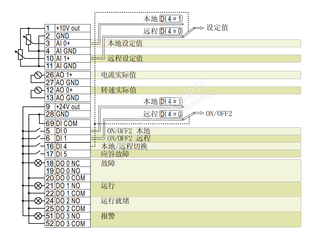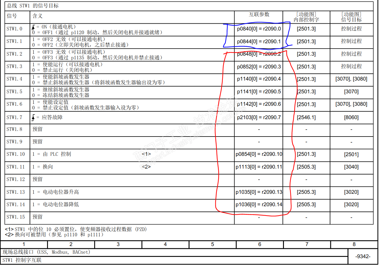 G120XA的连接宏方便我们进行类似功能的参数调试,比如需要端子启停,MODBUS调速时会发现连接宏51就我我们的需求完全相同,兴冲冲设置好后会发现,变频器竟然无法启动,慢慢找问题吧 先看看接线图和参数表 从电路图和参数表看,没有一点问题,P840和P844这两个负责启停控制的参数已经分配到DI0端口了,但是DI0端口多次拨动也无法启动,再进一步去看看MODBUS的控制字 从MODBUS的控制字我们发现,其中P840和P844的负责启停的参数从默认的R2090.0/R2090.1确实已经被宏51换成了端子的参数r29659.0/r29659.1,但仔细分析会发现,控制字中不仅仅是启停控制,还有启停的比如斜坡控制,OFF3控制,使能禁止运行等控制位,通过查看参数,发现这些控制位依然是MODBUS的标准配置,也就是这些位依然保留了r2090.x的配置,看到这里就知道了,如果这些控制位没有信号,那变频器自然是无法启动的,接下来就是如何解决了。 方法1:配置好宏51后,直接在MODBUS的控制字发送047E,那这些控制字就自然被通信赋值成有效了,端子启动,变频器正常运行了。 方法2:直接通过修改参数的方法,将类似P848,P852,P1140,P1142,P854这些参数都直接 设置成1,端子启动,变频器正常运行。 连接宏是方便了我们的配置,但是仍然需要知其然并知其所以然,才能在发生预想不到的现象时步步为营,分析问题,解决问题。 |