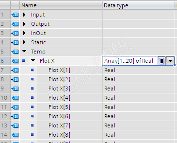 在FB块里的temp里定义了两个结构一样的Array数组,编译的时候,一个数组没问题,另一个提示为错误的数组,难道temp里只能定义一个数组吗?问题如图片所示。