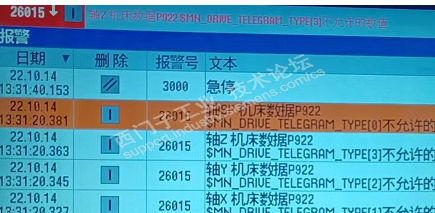 我们之前在配置结束后会把NC导入系统,在配置报文的时候一般都选择默认,当我导入NC后画面出现报警26015之前没有碰到类似问题: