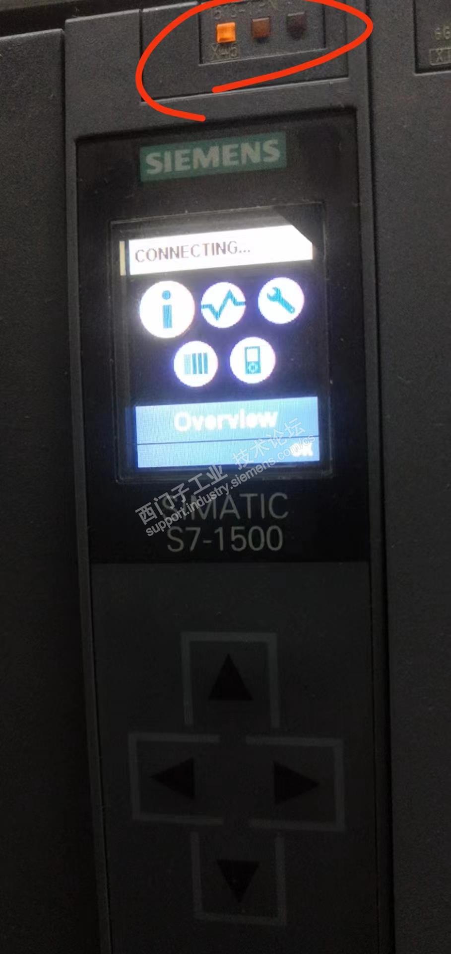 主题:【跨新年】十余年不遇之PLC阵亡 话说在2022年的某一天23点左右,接到相关人求助电话,据描述,设备无法动作,HMI显示“###”,乍一听,通讯故障哇,好解决。 待到现场,打开电气柜,查看西门子交换机,状态灯均有闪烁,HMI后网卡灯也有闪烁。 心有疑惑,此事必有蹊跷。1513CPU右侧本地模块绿色灯均慢闪,这情况此前着实不曾遇到。 再查1513CPU显示屏模块一直显示“connecting”,遂尝试笔记本连接CPU,“在线访问”中,扫描所有站点,能扫描到其他站点,唯独无法扫描到CPU,但CPU硬件网线灯的确是在闪烁,且无法ping通。 随后,拿一条新网线,将笔记本通过网线直接连接至CPU,仍ping不通… 难不成,CPU真挂了?然已过半夜,现场无备件,一夜无话。