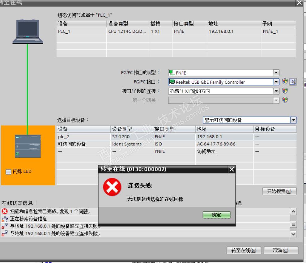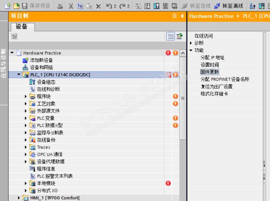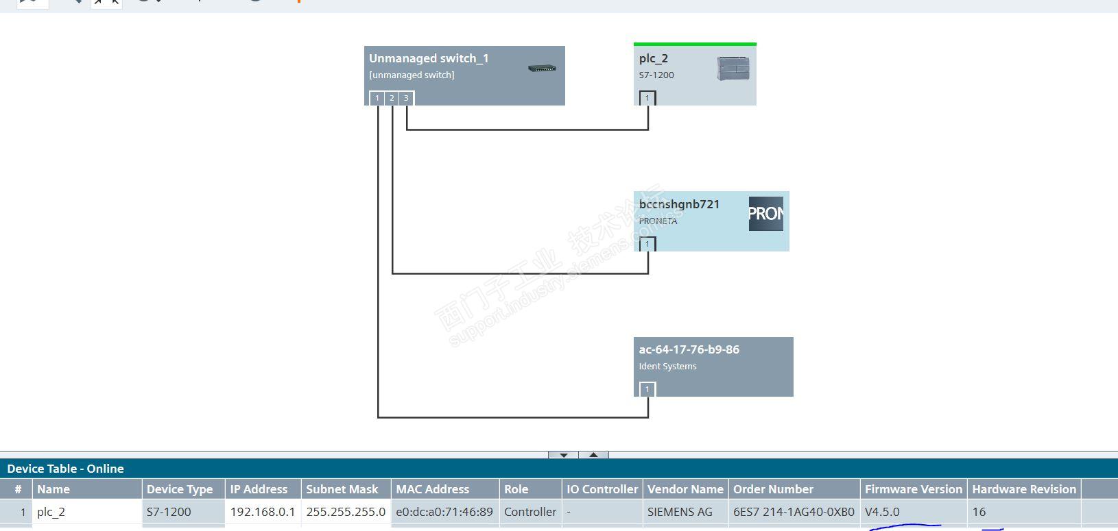 主题:一次1200 PLC 无法在线和配置的处理 拿到了一个用过的PLC, 运行灯正常绿色,无任何报警,可以用TIA 扫描到,也可以PING 通,但是不能在线或者修改网络参数,会是什么问题导致的呢? 以上呢是分别用TIA ,STEP7 和PRONETA 处理时得到的截图; 在看到最后的这张的时候,我发现了一个问题,TIA V16 最多支持到 4.4 固件,这个PLC 居然是4.5,会不会是这个问题呢? 更新固件的三种方法,1.使用TIA(前提是能在线)。2 ,使用WEB (前提是plc 提前开通了这个服务)3.使用内存卡(顺手拆了一张12M 的卡,结果发现固件文件有14M 多,只能含泪更换一张大容量的) 更新的后的固件终于可以在线了,说起来1200 要是有个类似1500的开关就好了,至少可以直接清理程序;剩下的就好做了。 另外遇到需要清理内存的时候‘‘MRES’’ 按钮比恢复出厂好用,恢复出厂可能不会清理保持性存储器;