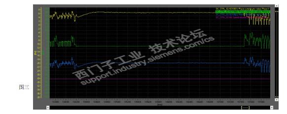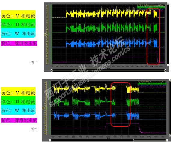 从图一到图三可以看出,当速度设定值到200转时,须臾,U相电流就检测不到了,故障出现。